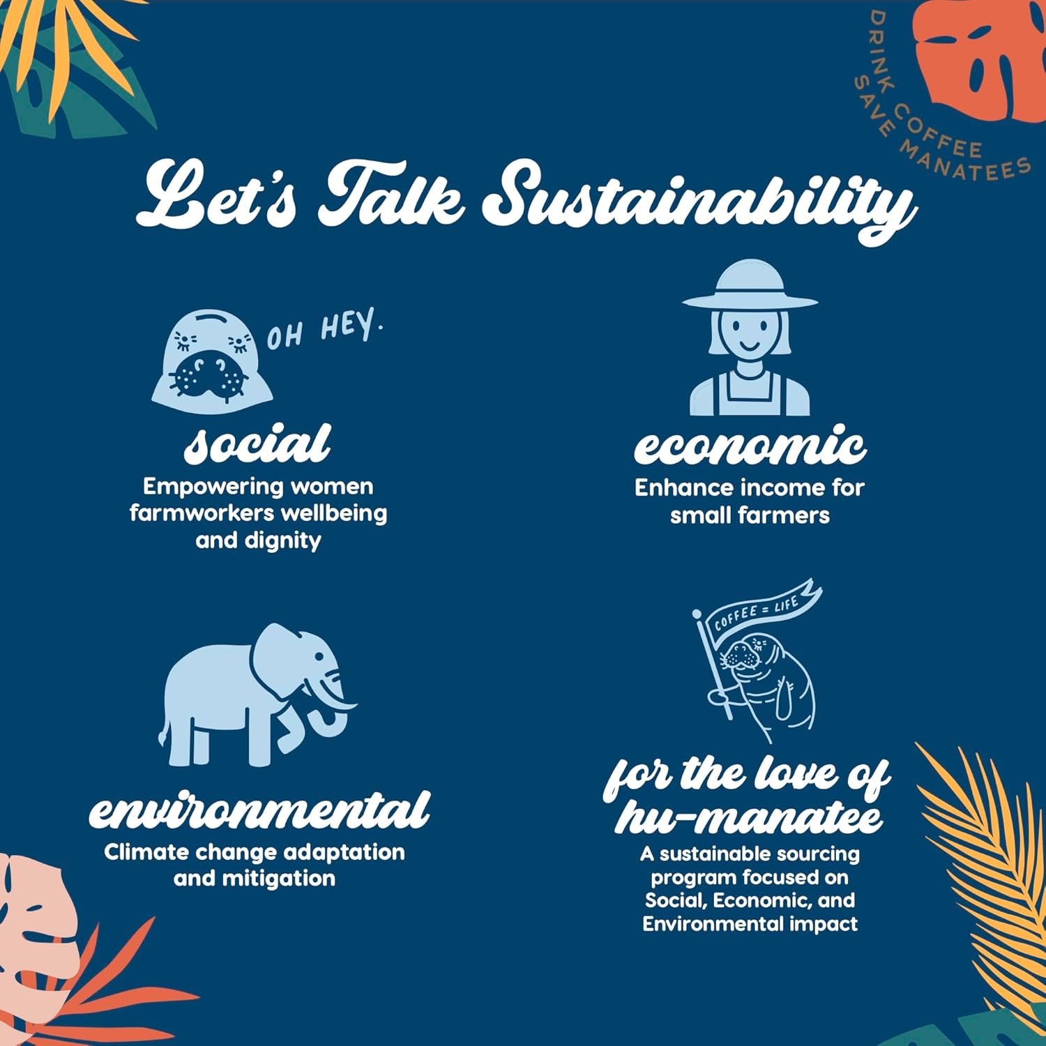 DRINK COFFEE. SAVE MANATEES: We support manatees and their habitats with compassion and action. Manatee coffee regularly donates to trusted organizations like Save the Manatee Club, Fish & Wildlife Foundation, and Mote Marine Laboratory. Your purchase of premium high quality coffee helps us increase our support to these wonderful organizations.