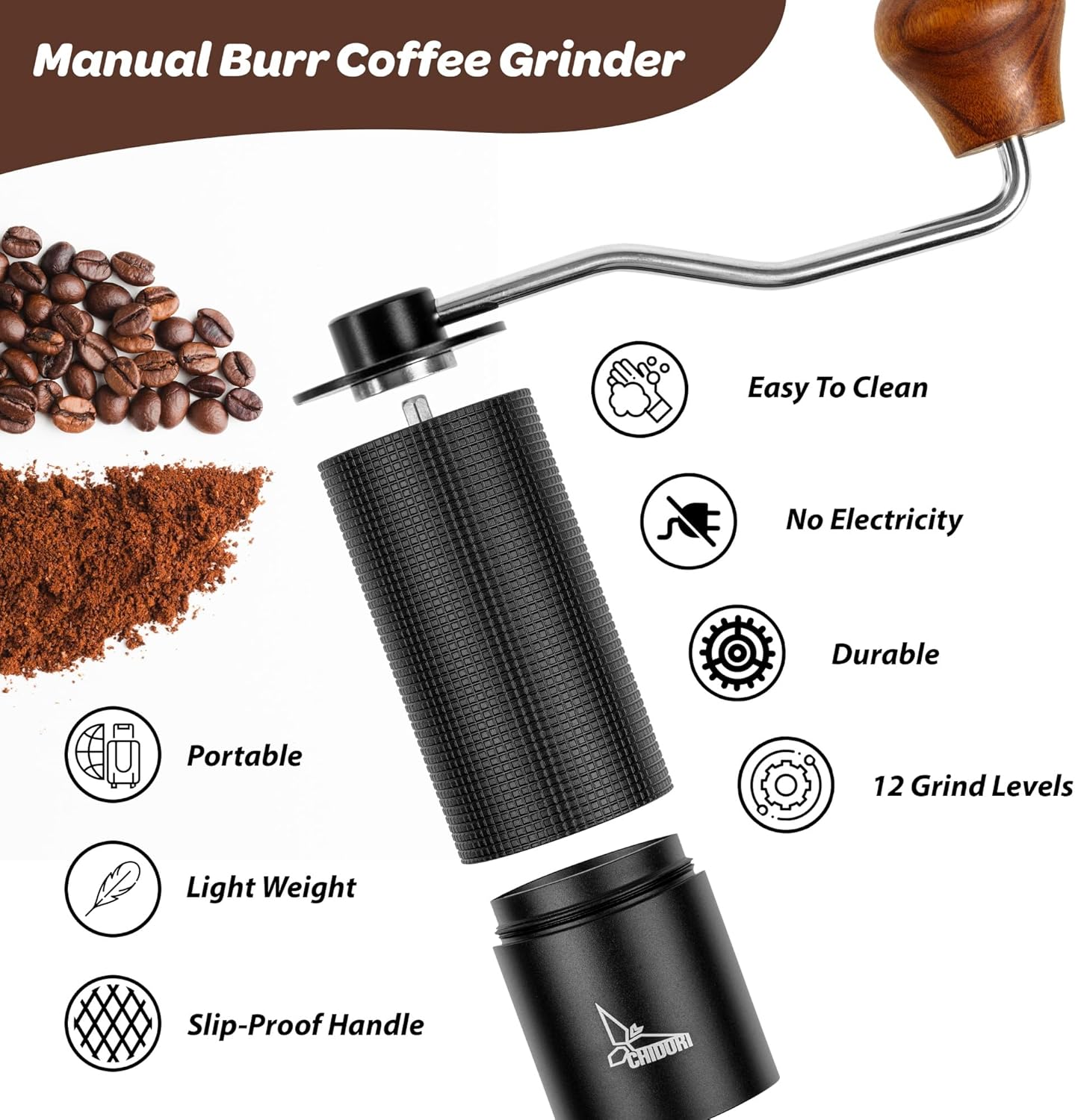 ERGONOMIC DESIGN: Equipped with a solid wood handle, this handheld coffee grinder is comfortable to grip. Its ergonomic design ensures a smooth and effortless grinding experience that will turn your beans into perfectly ground coffee.