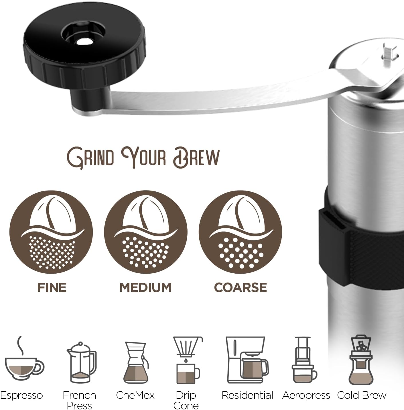 High-Quality Design for Any Adventure: Crafted from high-quality 304 stainless steel and a robust ceramic conical burr, our coffee grinder is built to withstand any adventure. The sturdy construction and optimal length provide the leverage needed for easy grinding, ensuring a reliable and durable companion for your coffee journey.