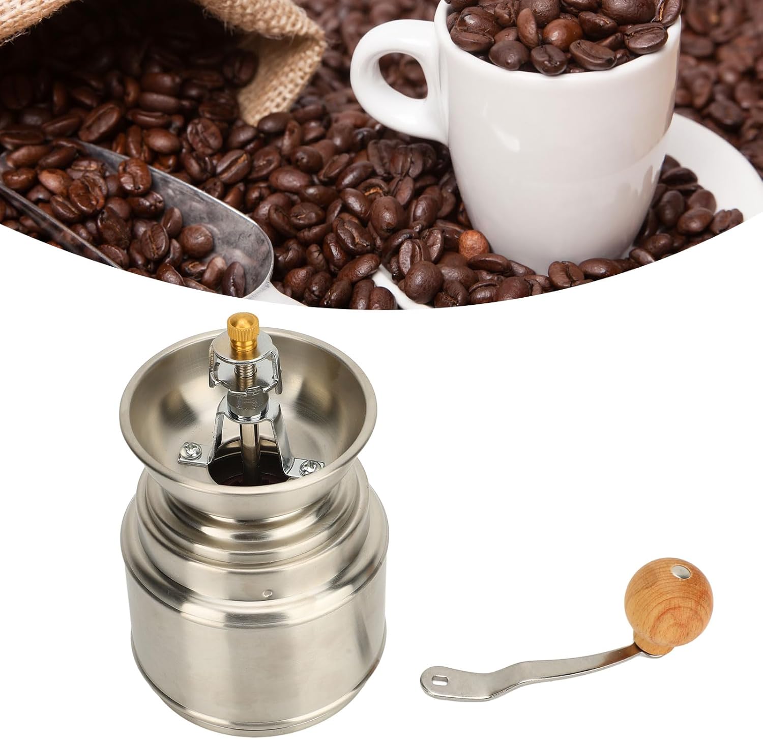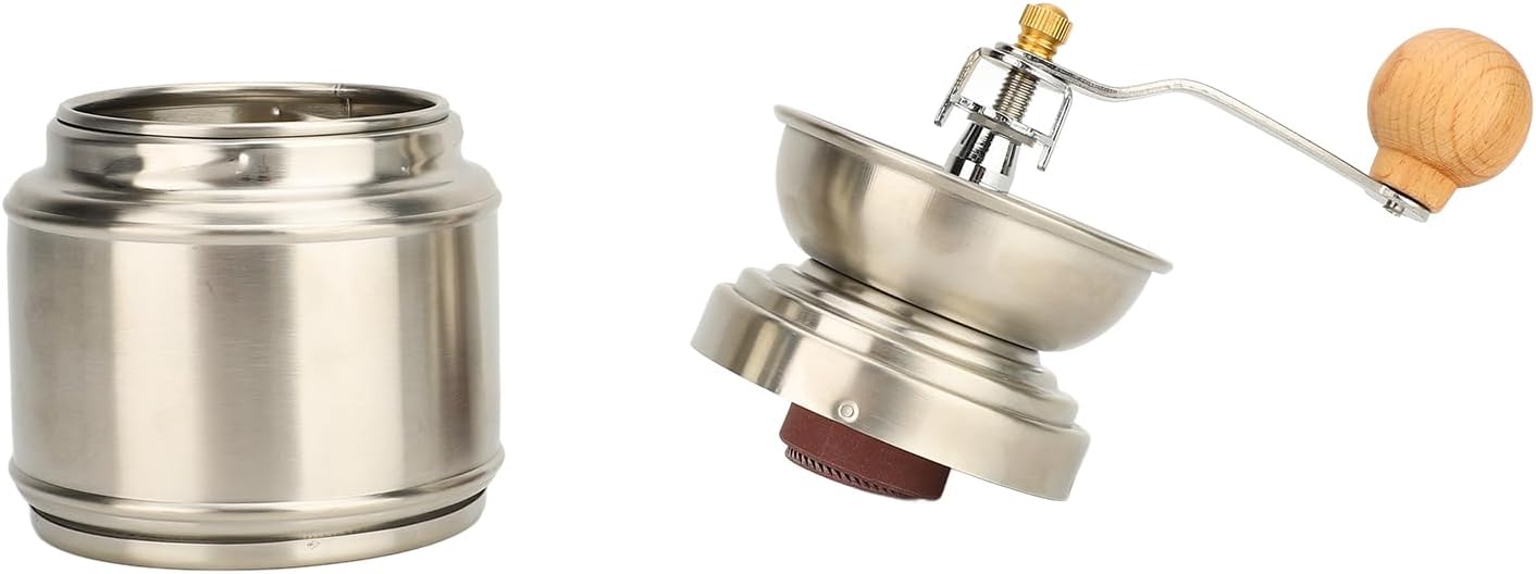 HAND CRANK DESIGN: The coffee mill adopts hand crank design, simple and convenient operation, easy to use, you can enjoy freshly ground coffee anytime.