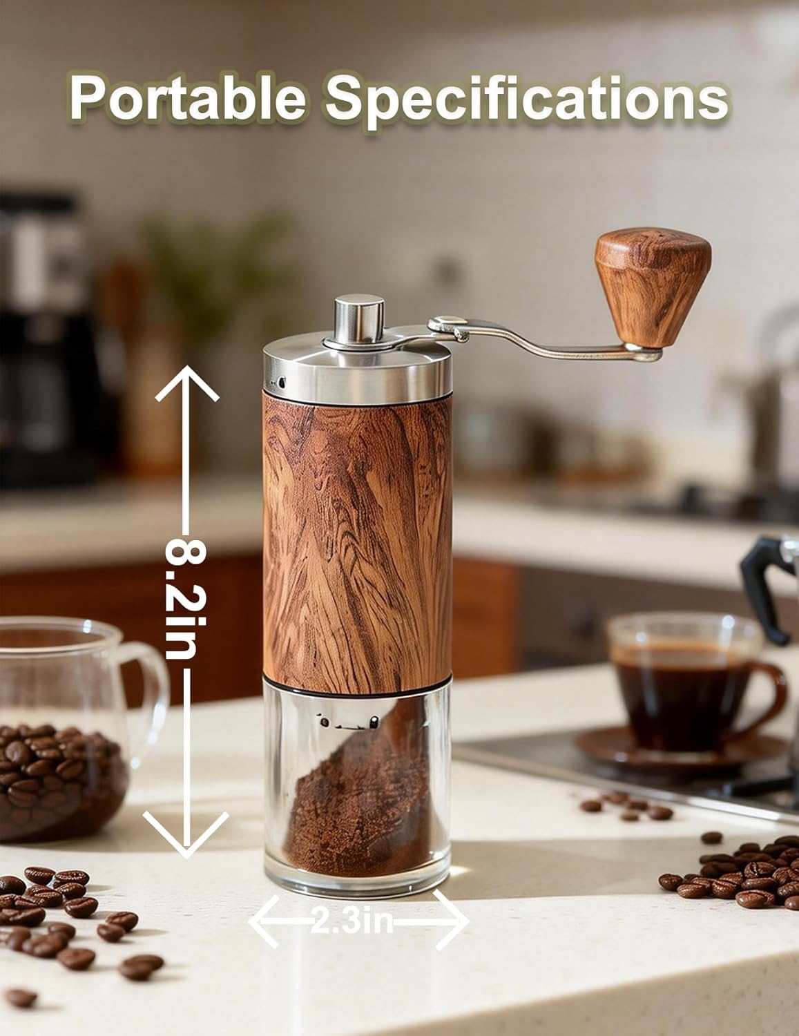 Ultra-Light & Portable Hand Coffee Grinder:Engineered for mobility, this ultra-light hand coffee grinder fits effortlessly into any backpack or drawer. Its compact design makes it the ideal travel companion for camping, office use, or daily commutes, offering fresh grinding anywhere without bulk.