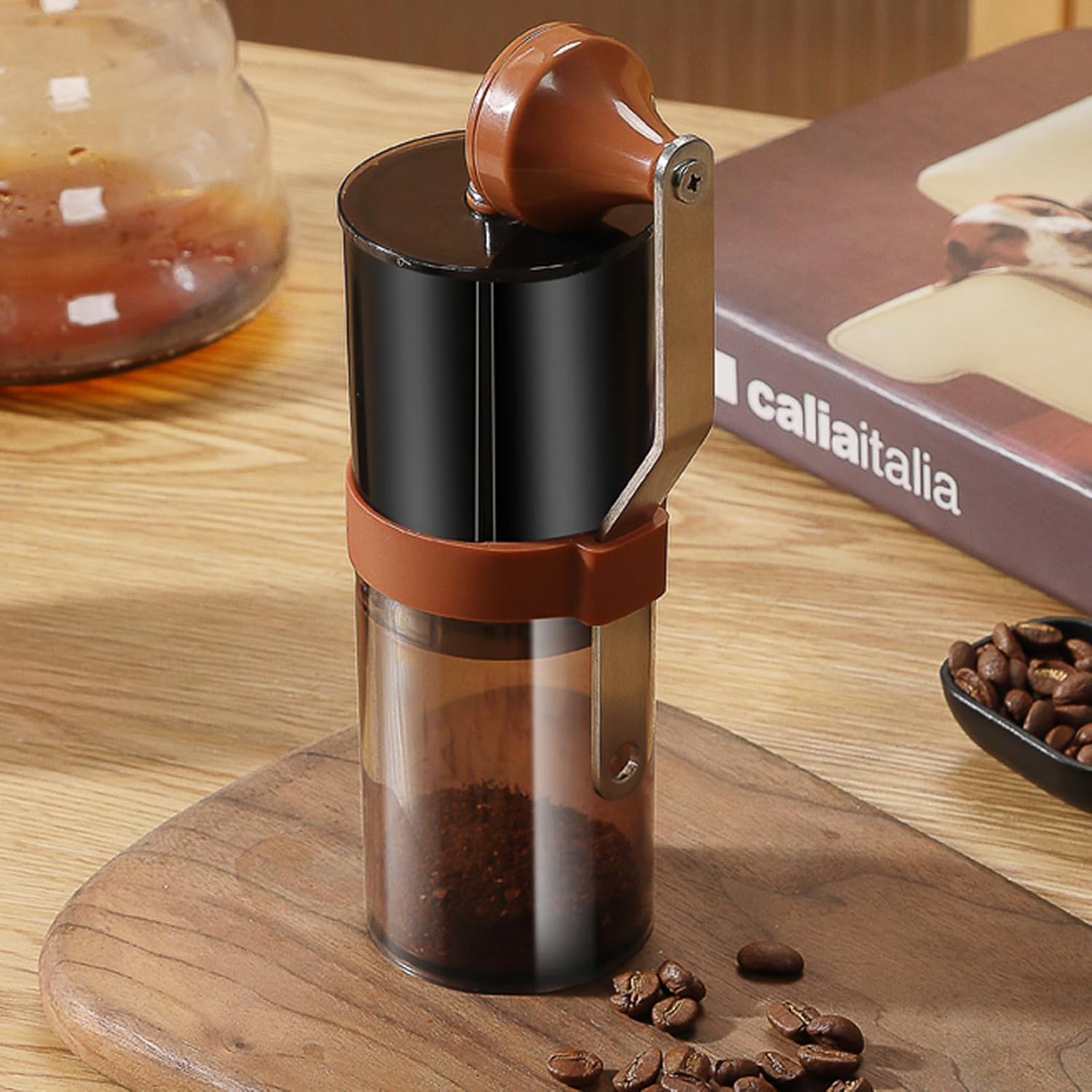 30G BEAN CAPACITY: Grinding 30g of fresh coffee beans per batch, with a maximum capacity of 60 ml of finely ground coffee powder for multiple brews.