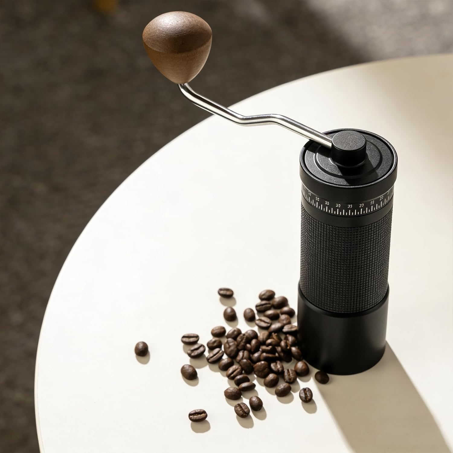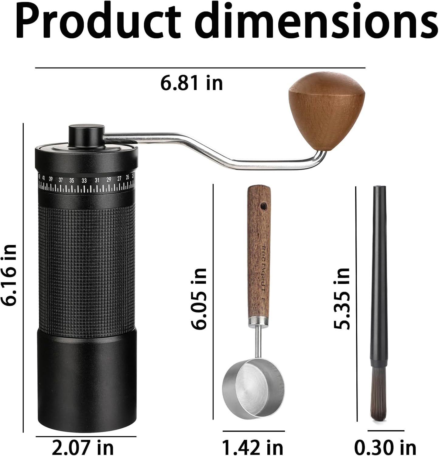 Full-metal Body:Featuring a robust aluminum alloy body to ensure consistent grinding quality and prevent plastic components from breaking and contaminating the coffee grounds.