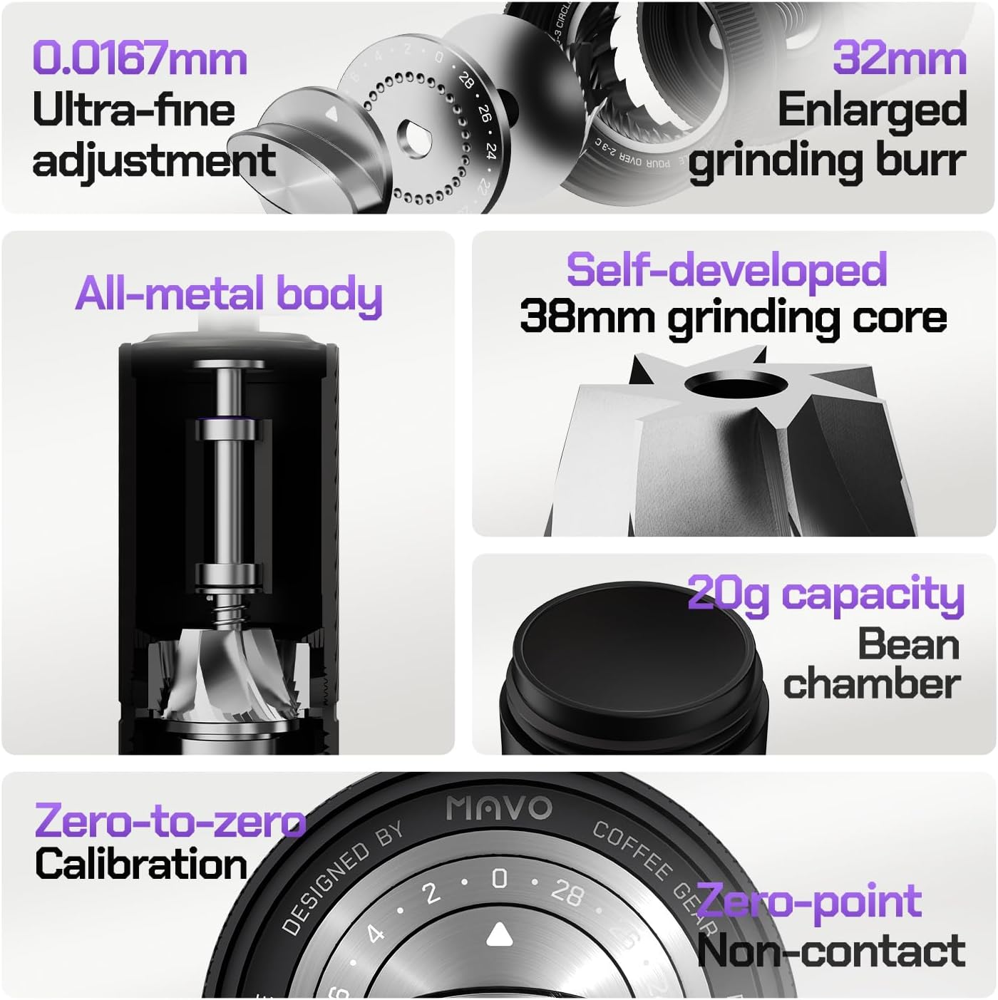 Zero to Zero Calibration – Manual coffee bean grinder is precise to 30 clicks/loop and 0.0167mm per click. Rotate clockwise for finer powder, and counterclockwise for coarser powder.