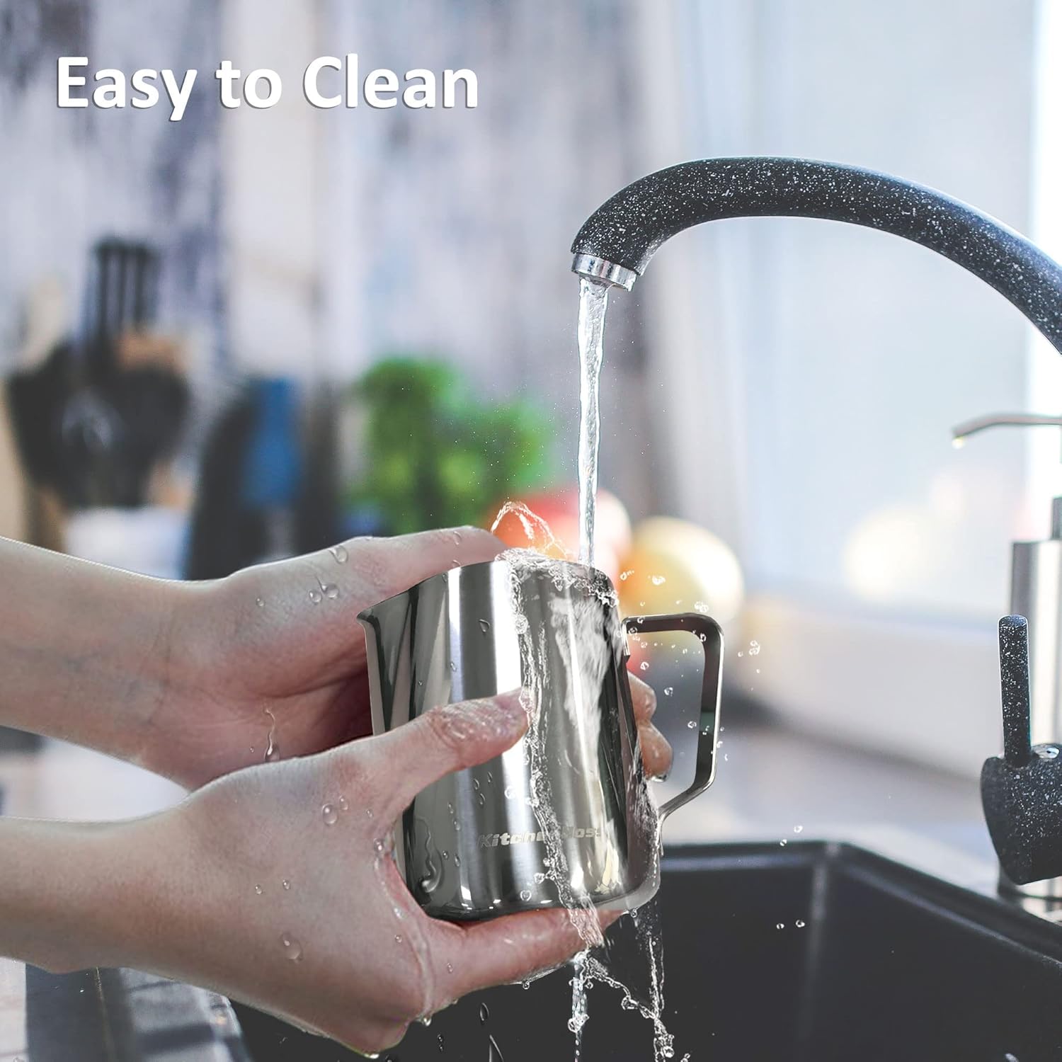 Point-mouth Design: The arc-shaped anti-drip spout can effectively separates milk and foam, and help you precisely control the volume and direction, allowing you to easily create latte art.