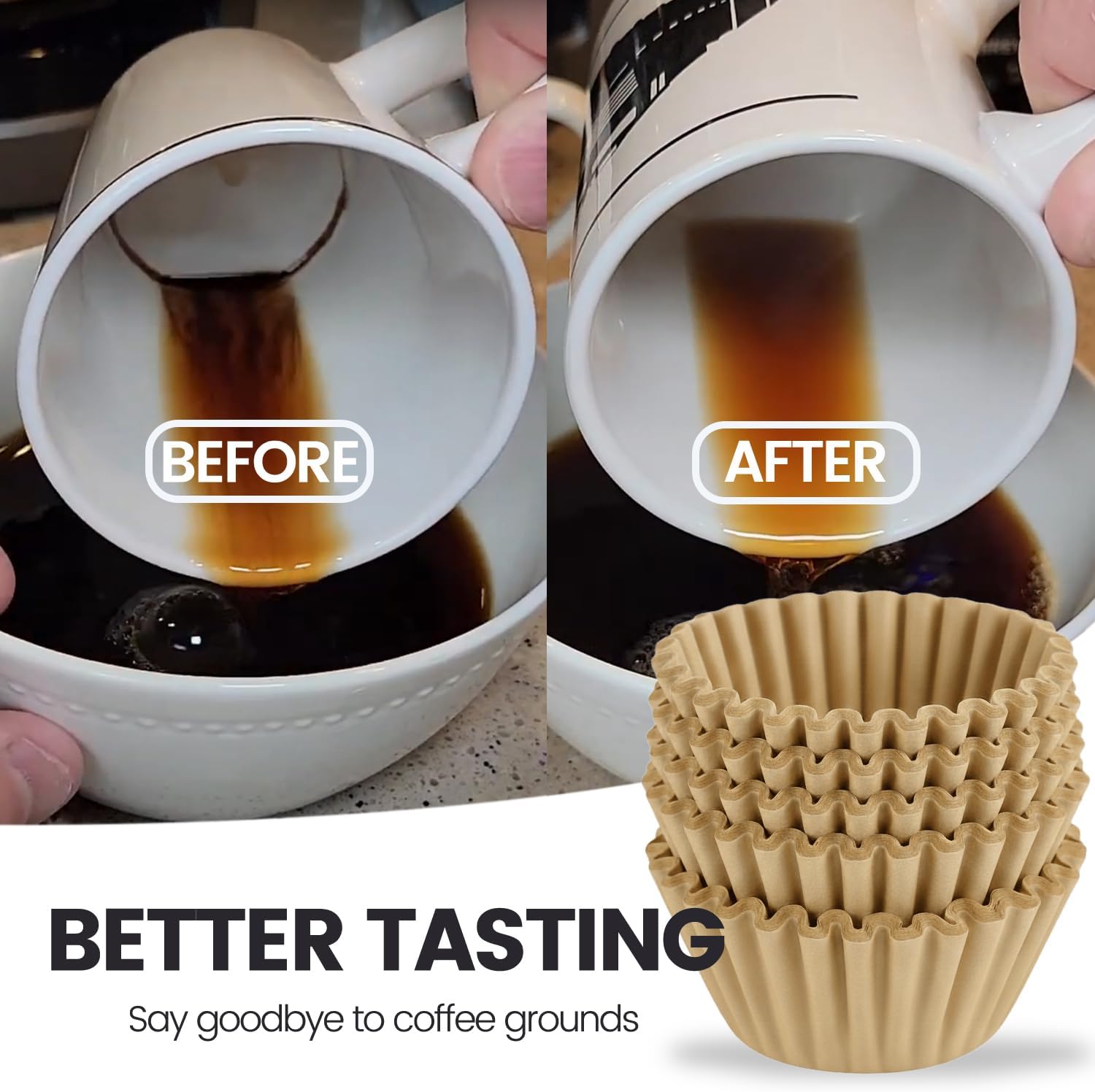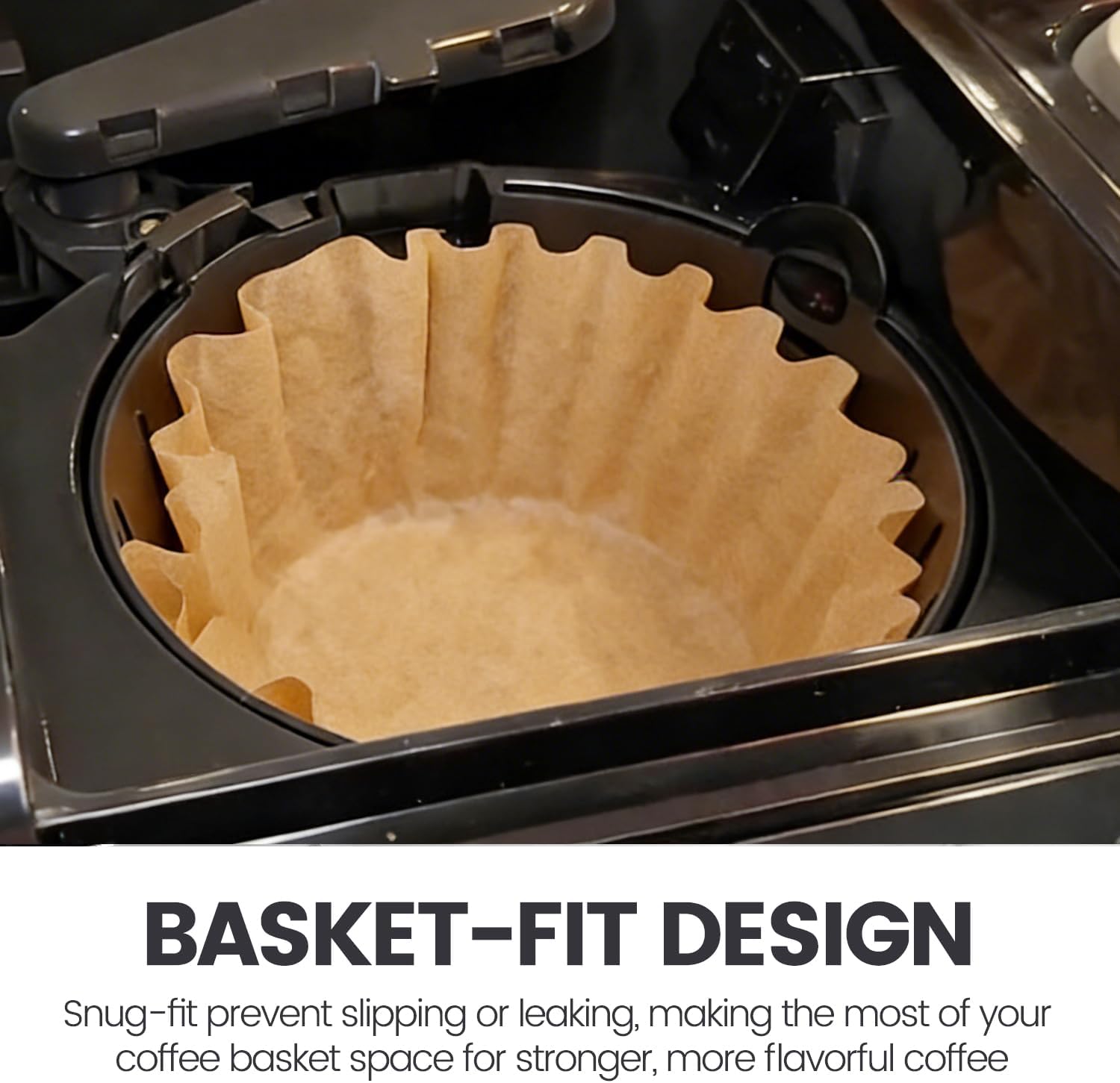 BETTER TASTE: These basket coffee filter 12 cup made from natural paper to block coffee grounds and bitter oils. Their uniform thickness deliver a cleaner, balanced, and richer coffee flavor in every brew