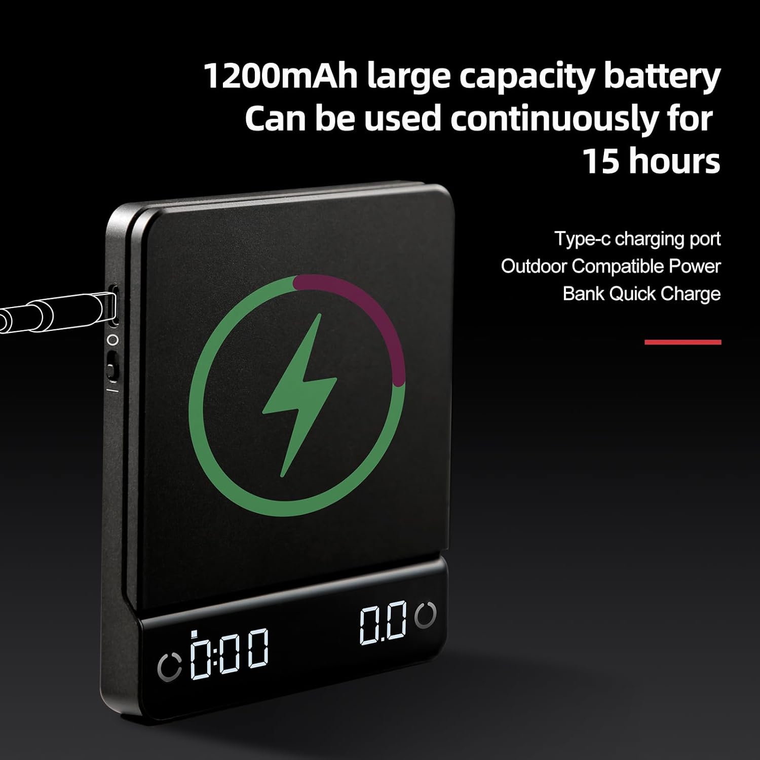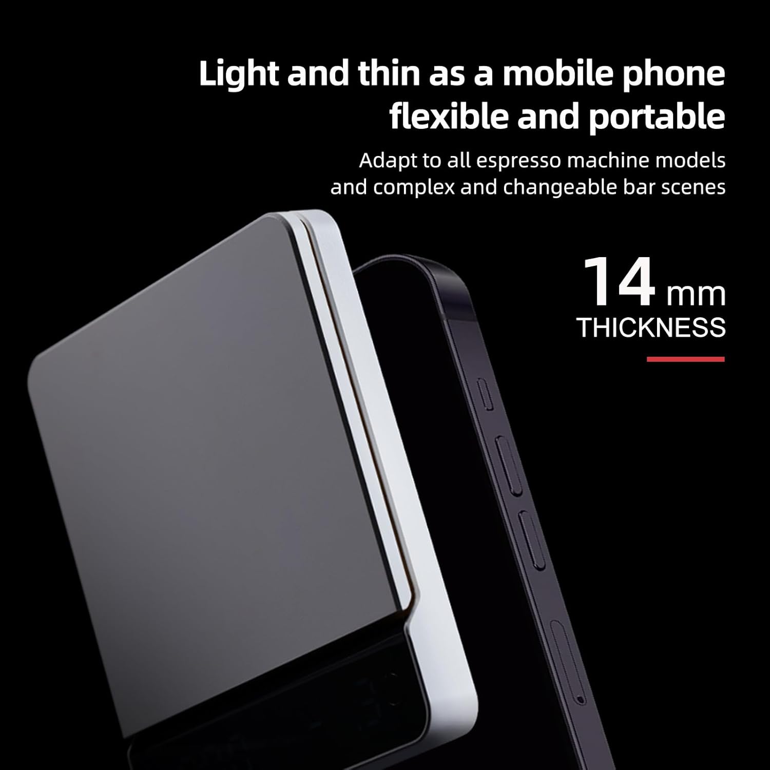 Mini Espresso Scale with Timer, Coffee Scale with Auto Timing, Small Precision Kitchen Digital Coffee Scale, Aluminum Alloy Body, Super Thin, 1200mAh, 2kg/0.1g Black