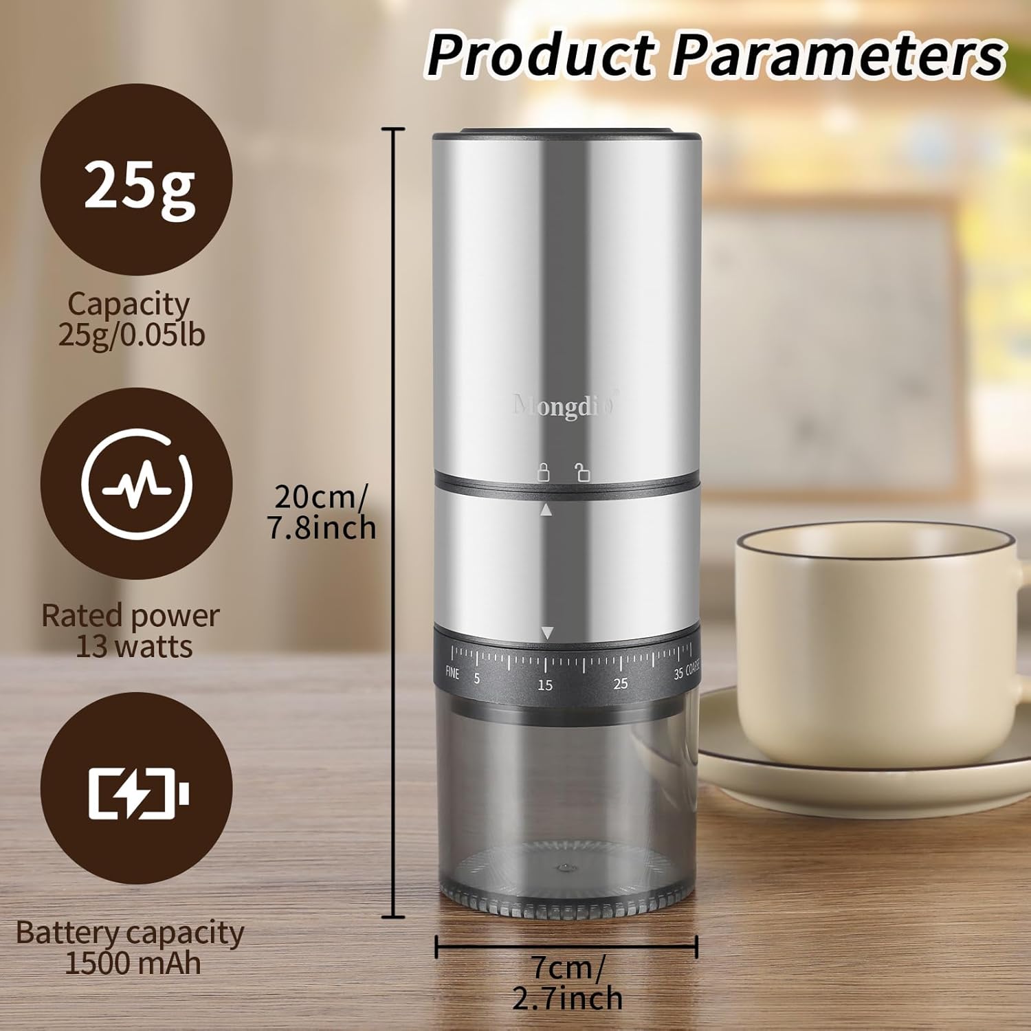 Be the first to review “Mongdio Portable Electric Coffee Bean Grinder with 38 Adjustable Settings, Electric Burr Coffee Grinder Stainless Steel Core, For Traveling, Camping, Office, Silver”