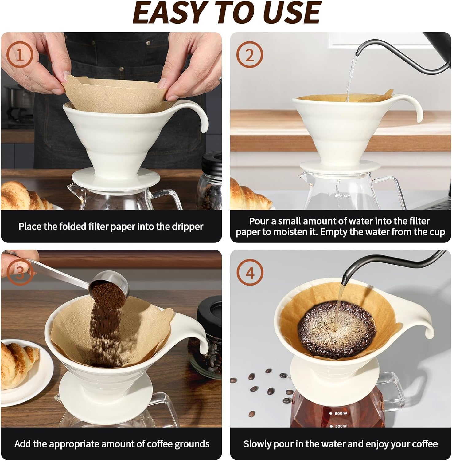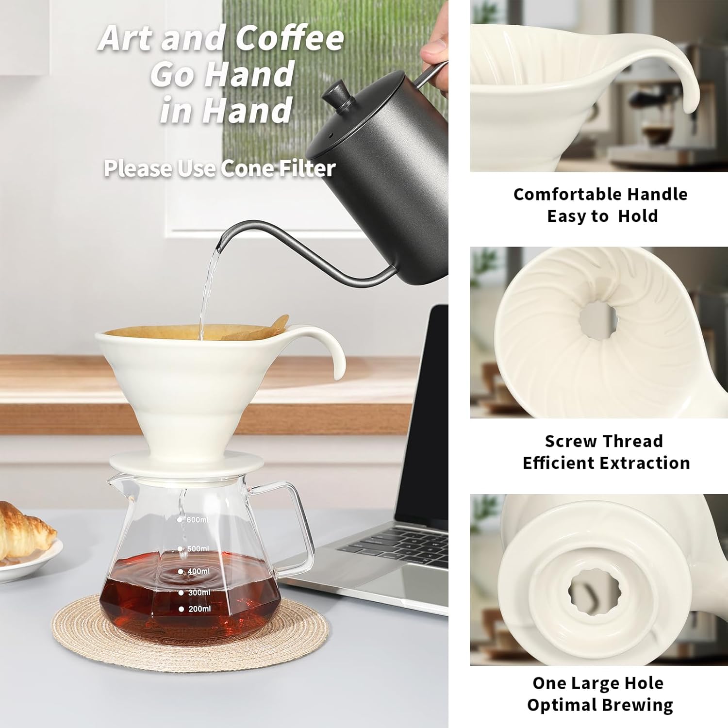 [Handy Helper]: The ceramic coffee dripper is not only a powerful aid for coffee extraction, but also a reliable companion for long-term enjoyment. Its excellent thermal insulation and conductivity allow you to effortlessly brew a rich, full-bodied cup of coffee.