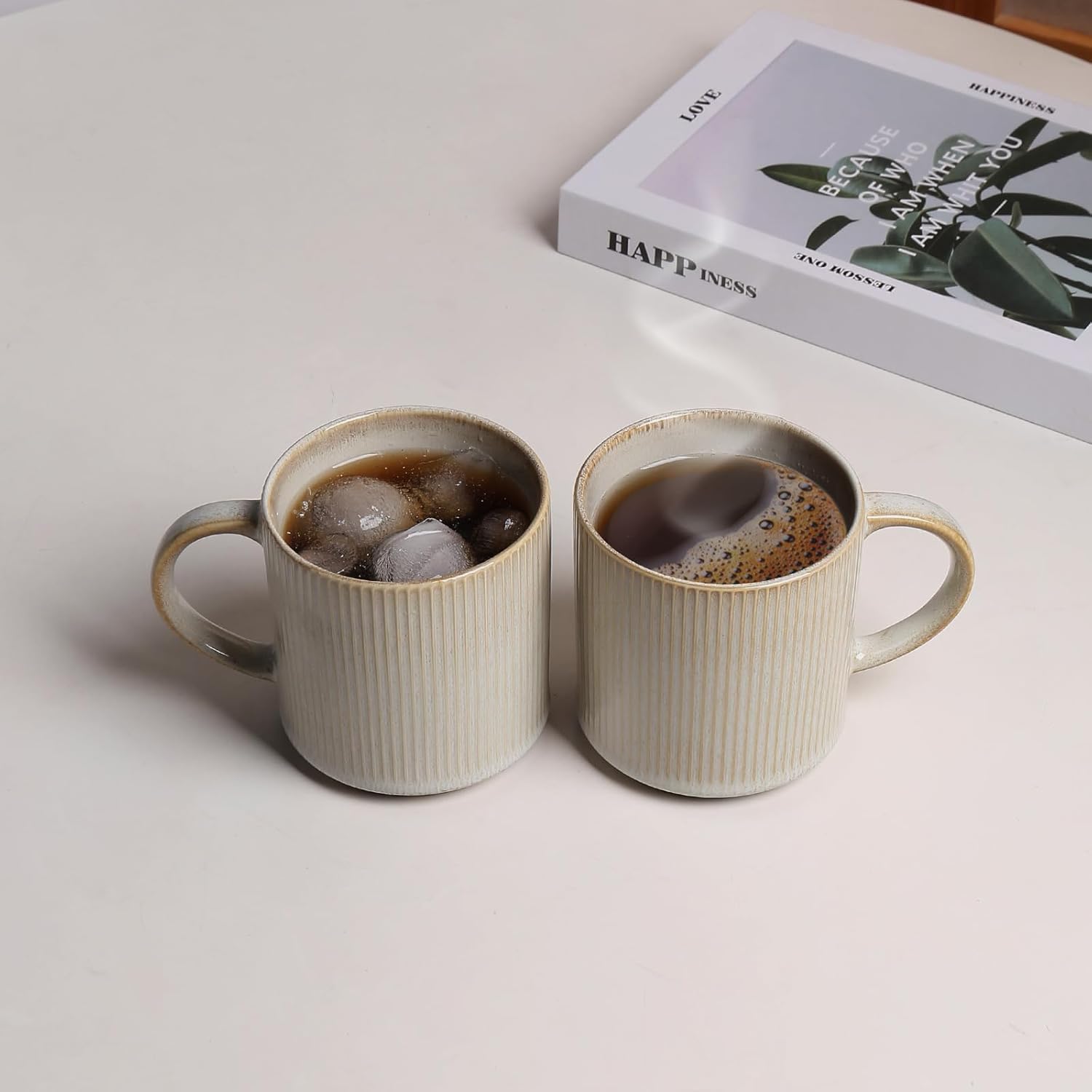 These mugs are designed to stack neatly, saving space in your kitchen. The subtle striped texture adds a refined look and a comfortable grip for everyday use.