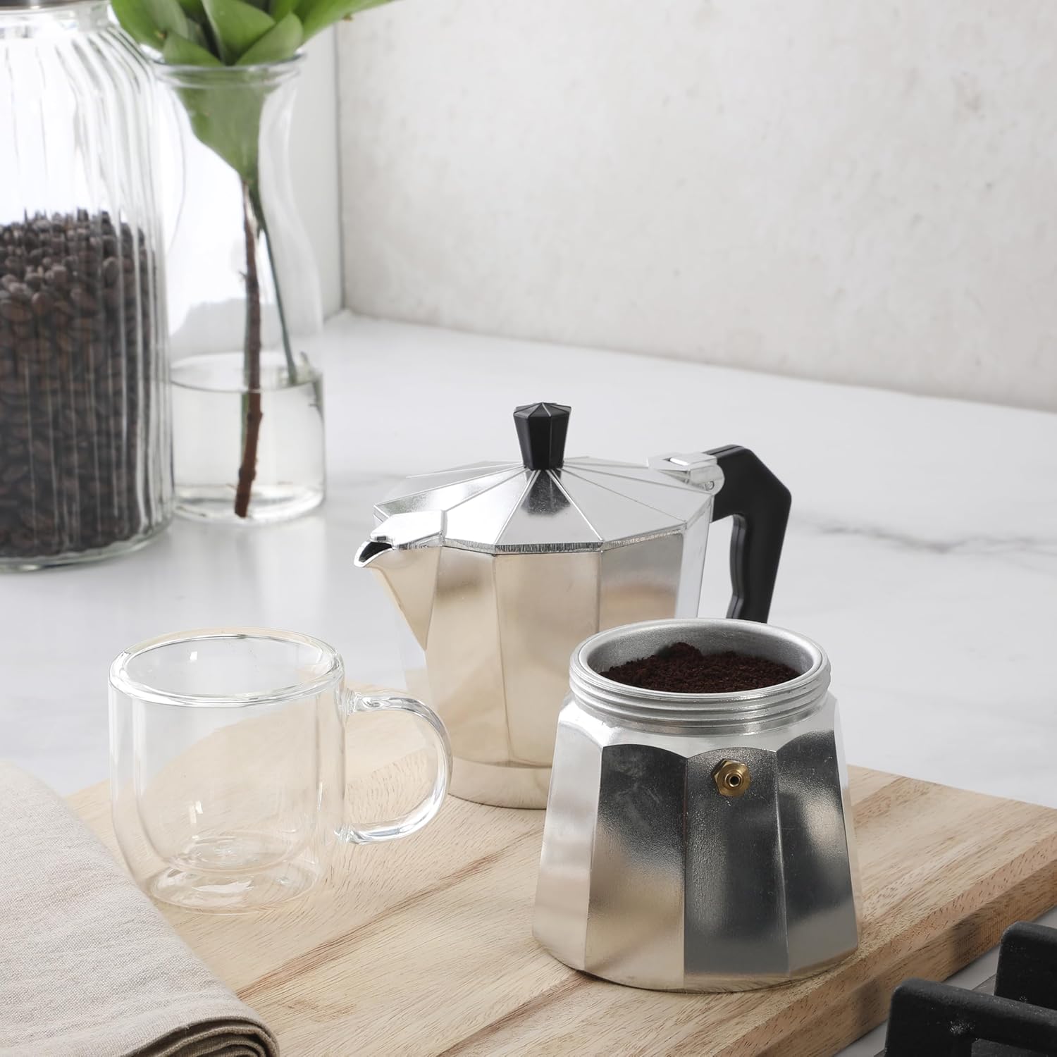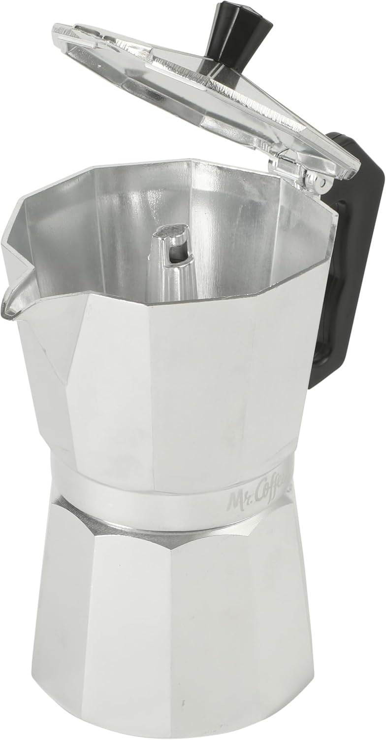 Mr. Coffee Brixia 6-Cup Stovetop Espresso Maker – Classic Italian Moka Pot, Aluminum Silver Espresso Coffee Maker with Handle for Strong, Rich Brew