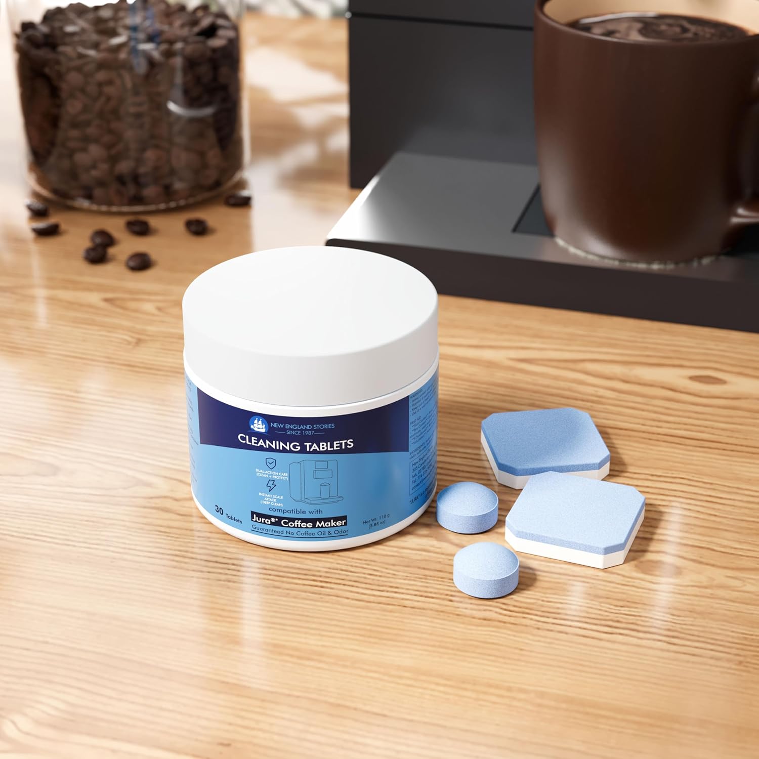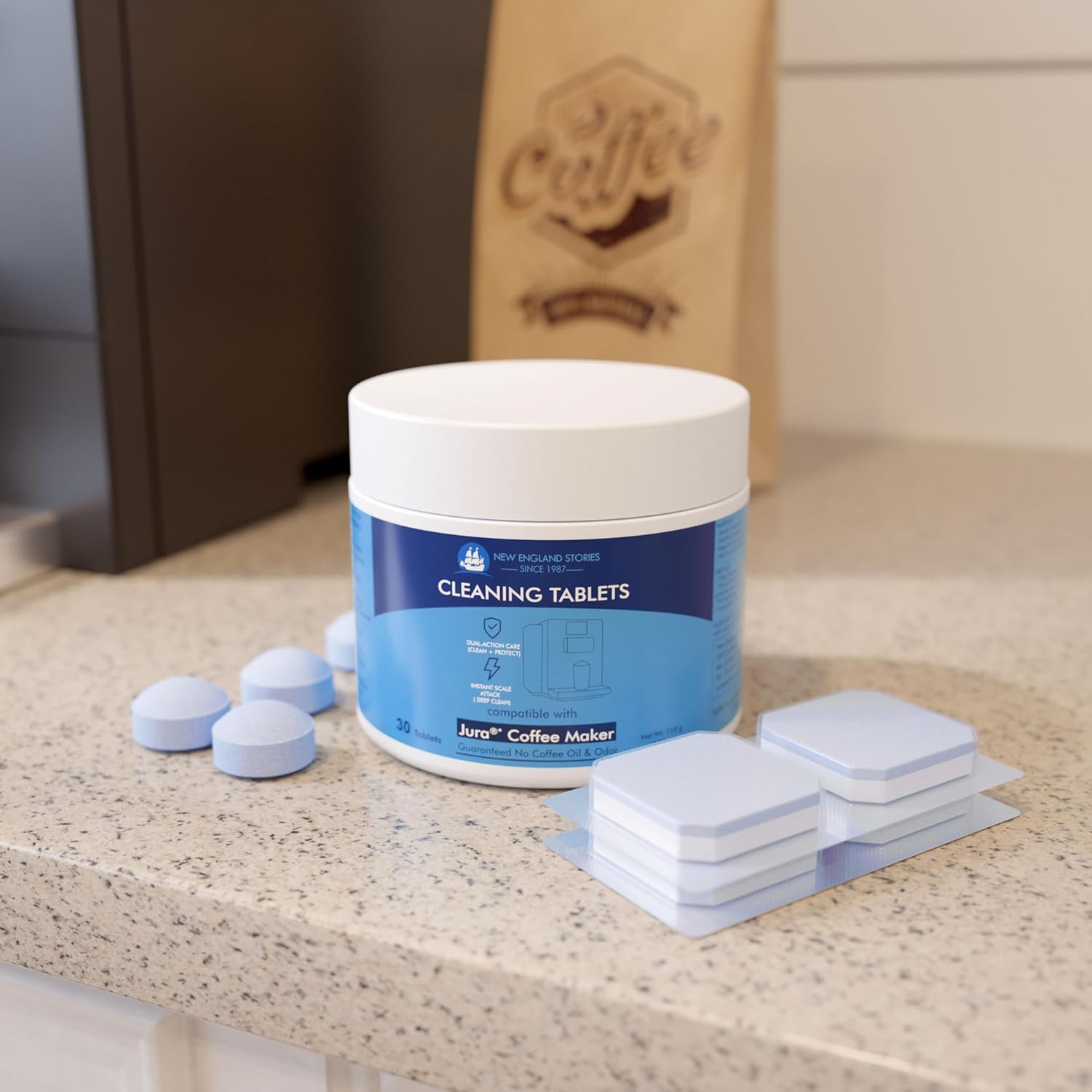 New England Stories Jura Compatible 30 Cleaning + 30 Descaling Tablets Kit – Clean Coffee Oils & Remove Limescale for Coffee Machines