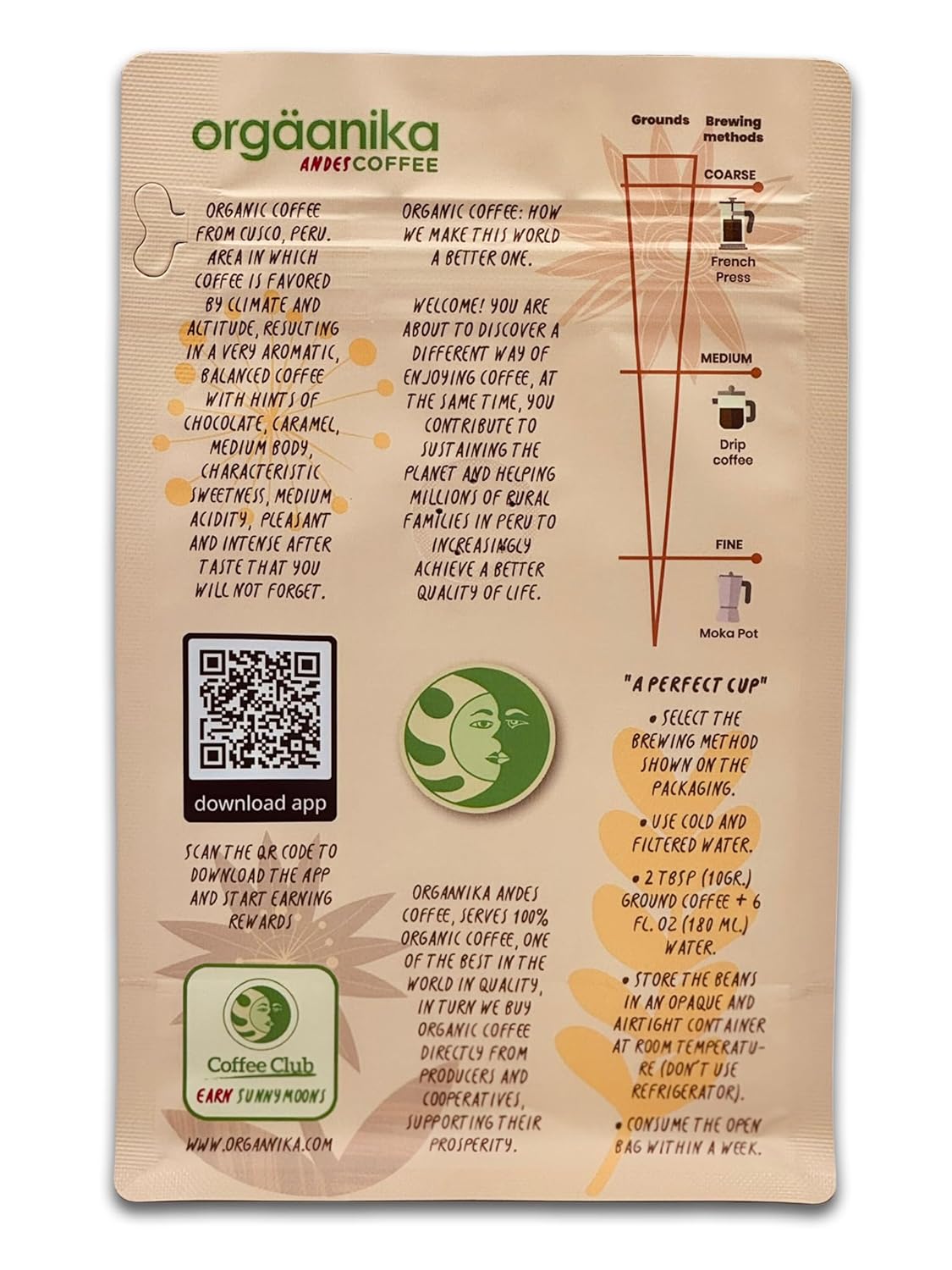 New Orgaanika Andes Breakfast 12oz | Gourmet Coffee Blend | Coarse Ground | Medium Roast | Specialty Organic | Best for French Press & Cold Brew Coffee, well balanced, bulletproof flavor, aroma and body. (bag 12oz.) | Loyalty Reward Inside the Bag (see product details)
