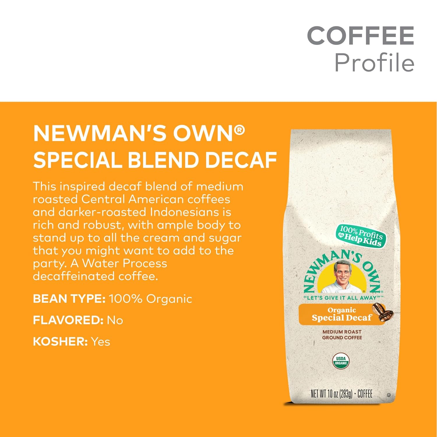 Newman’s Own Organics Newman’s Special Blend Decaf, Ground Coffee, Decaffeinated, Medium Roast, Bagged 10oz
