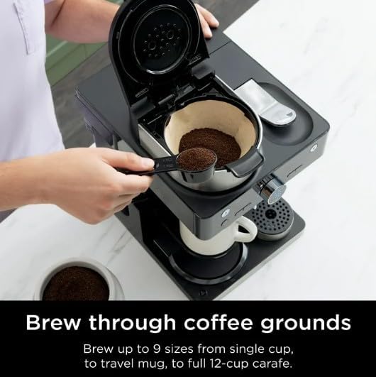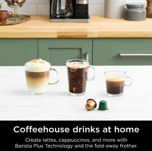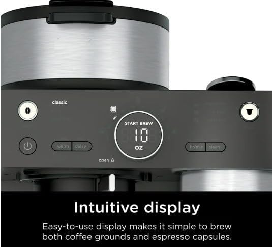 The Ninjaa Espresso and Coffee Barista System is a single serve espresso machine & coffeemaker combo that brews coffee grounds and a full-size carafe. With brew sizes ranging from single cup, to travel mug, to 12 cup carafe. Brew coffee grounds in up to 9 sizes and 3 brew styles: Classic, Rich, and Over Ice. Use your favorite espresso capsules to brew in 3 different styles: Espresso, Lungo, and Over Ice. With Barista Plus Technology, this 19 bar pressure system delivers an ultra-flavorful espresso with a silky-smooth crema by brewing at the optimal temperature and pressure. Create cappuccinos, lattes, and other coffeehouse drinks with the built in, fold away frother.