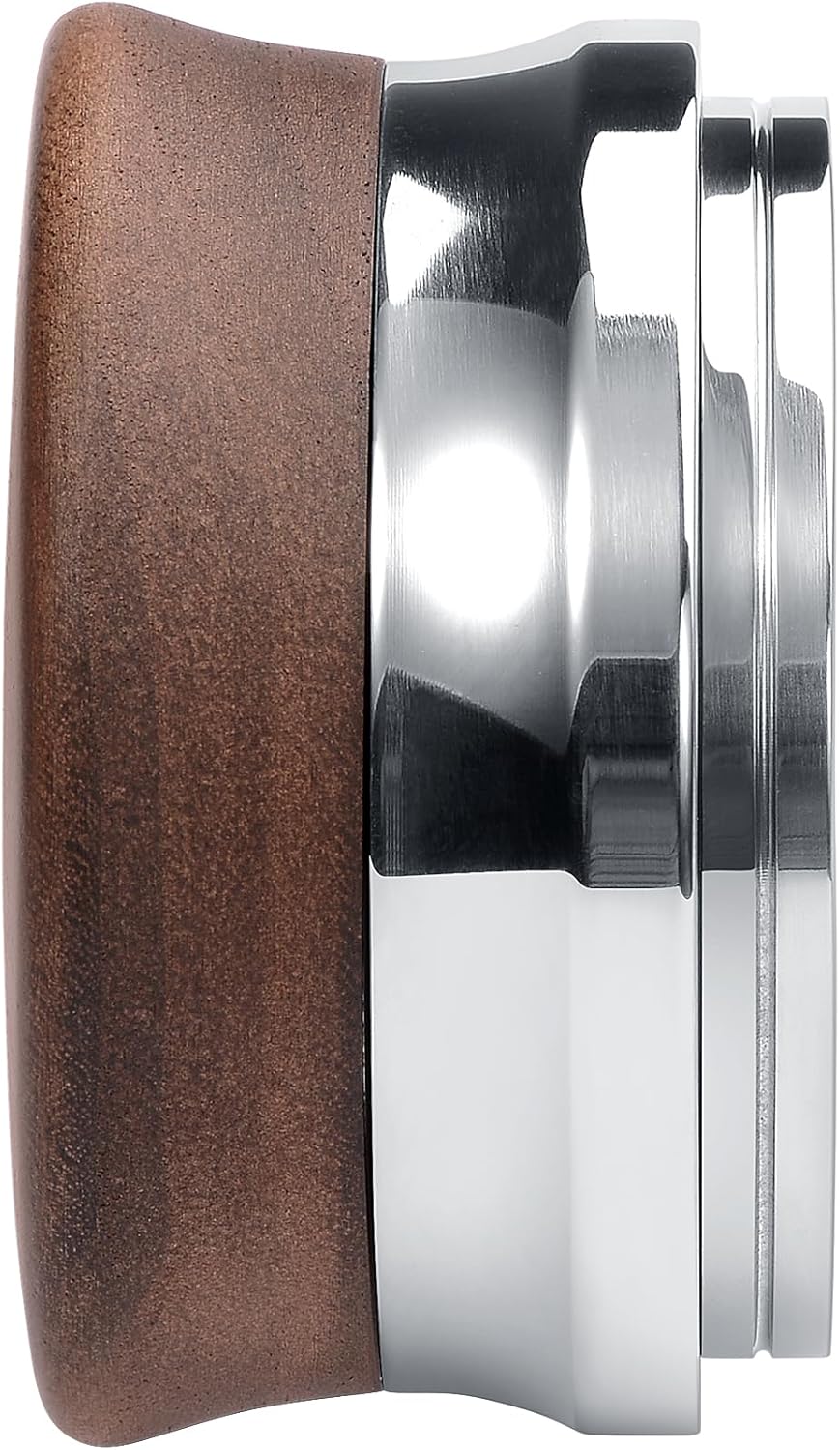 FUNCTIONAL AND ELEGANT: Its heavy, solid base ensures near-perfect results distribution. Combination of 304 stainless steel body, ∅58.5mm Chisel Blade base, and walnut handle.