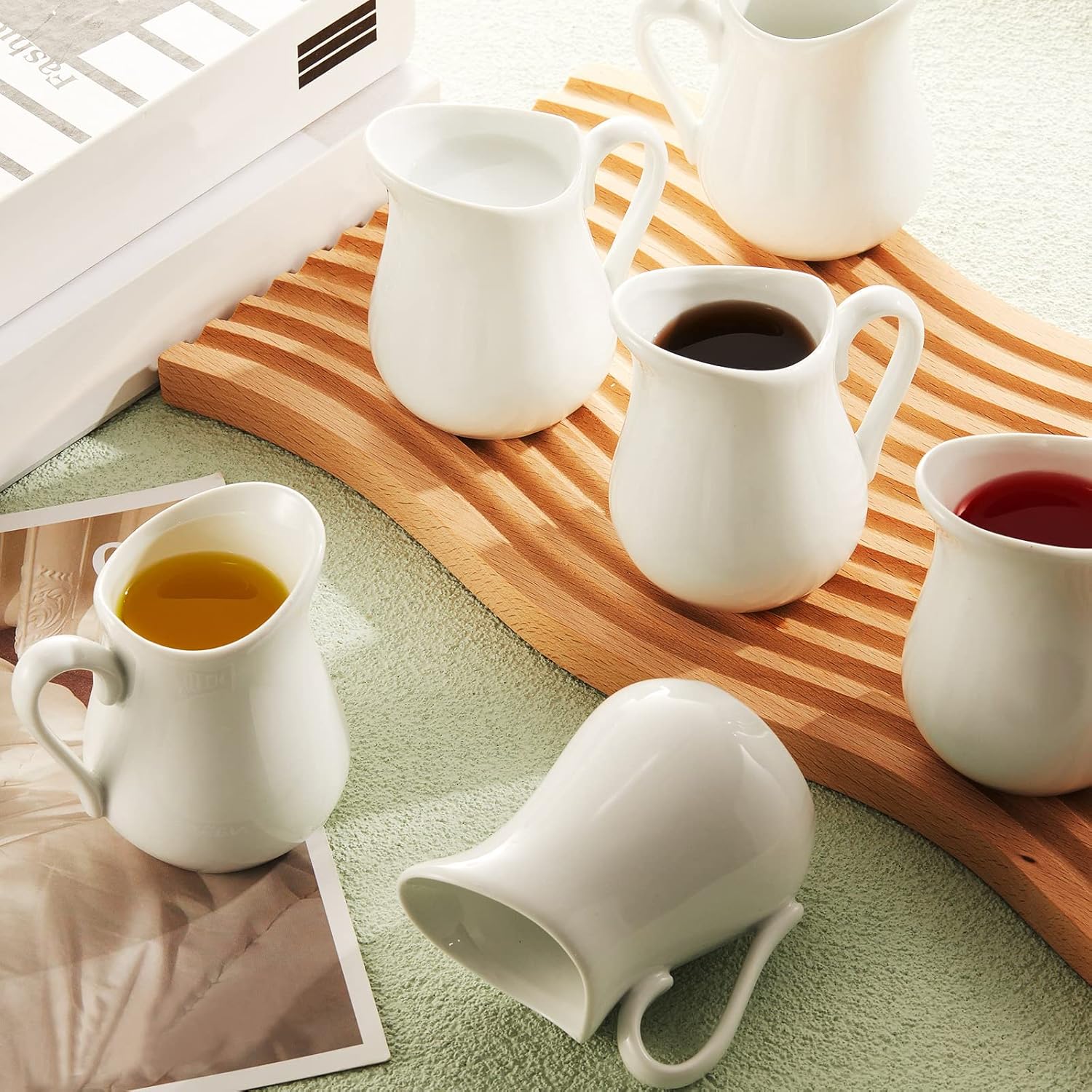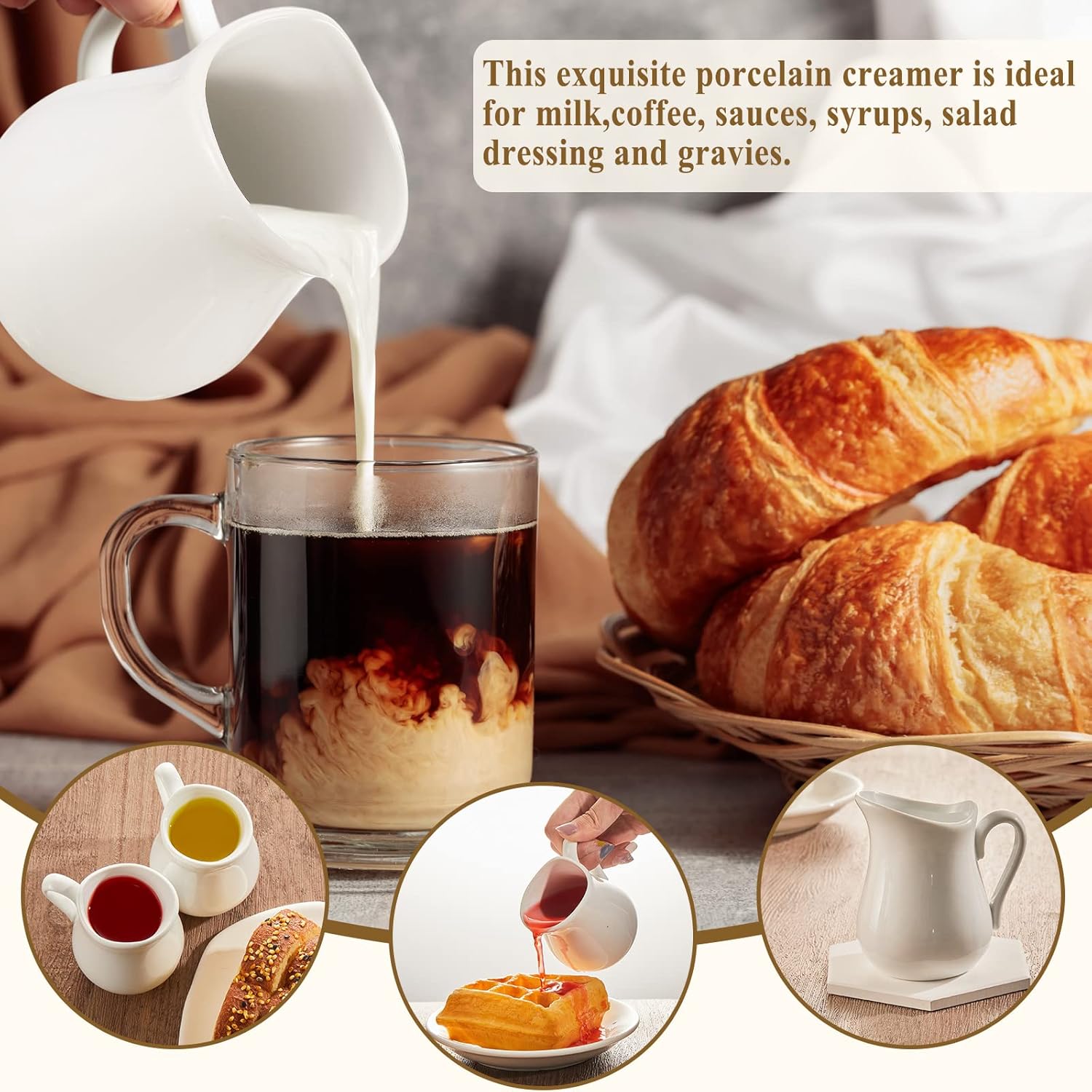 Nuanchu 12 Pcs 4.5 oz Small Creamer Milk Pitcher, Classic White Porcelain Creamer with Handle, Ceramic Maple Syrup Dispenser, Coffee Dairy Container for Milk Sauce Salad, Microwave