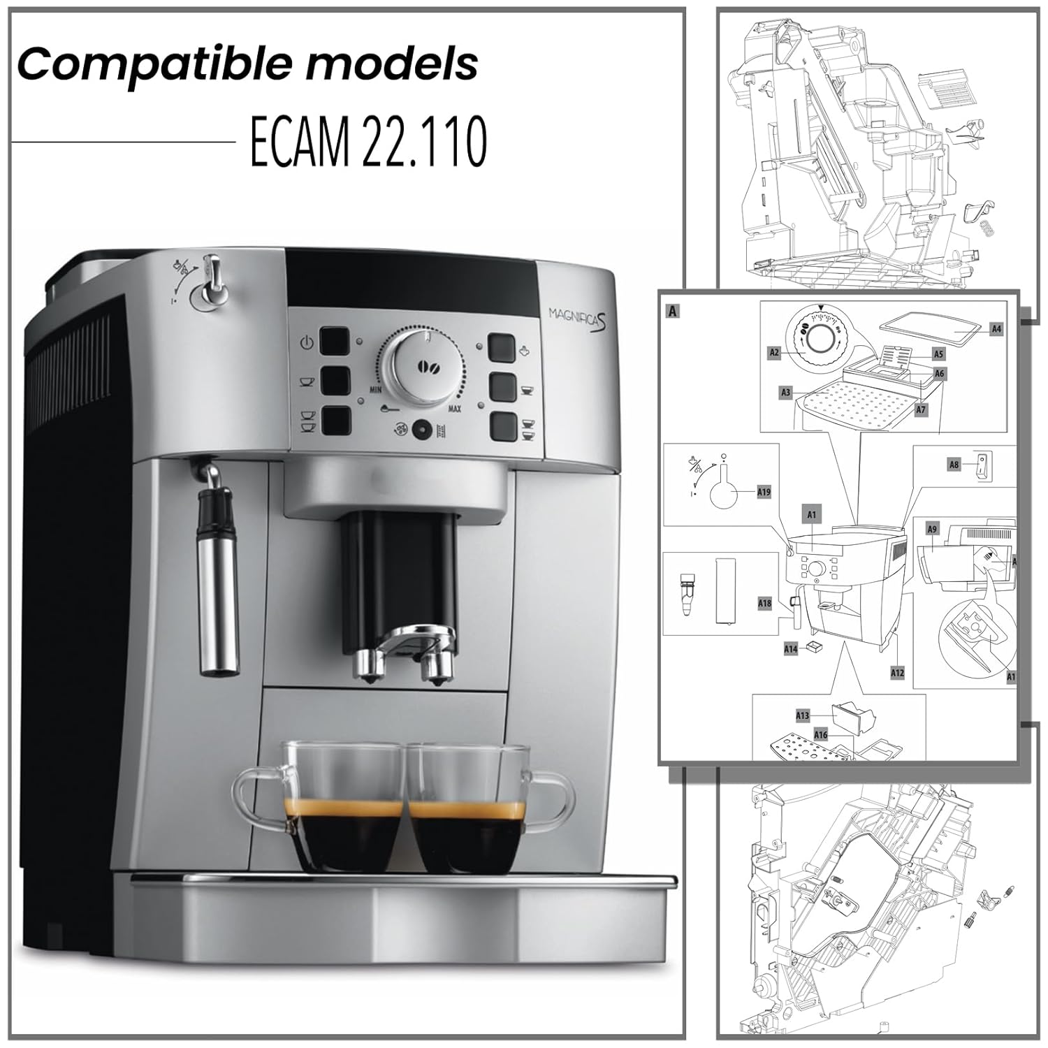 Applicable models include ECAM22.110 ECAM22110 ECAM22110B ECAM22110S Magnifica S Automatic Espresso Coffee Maker.