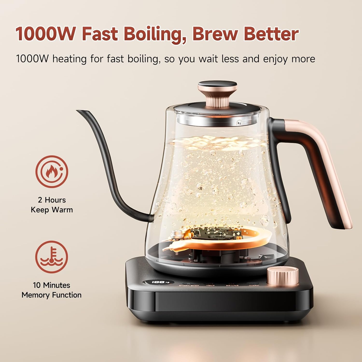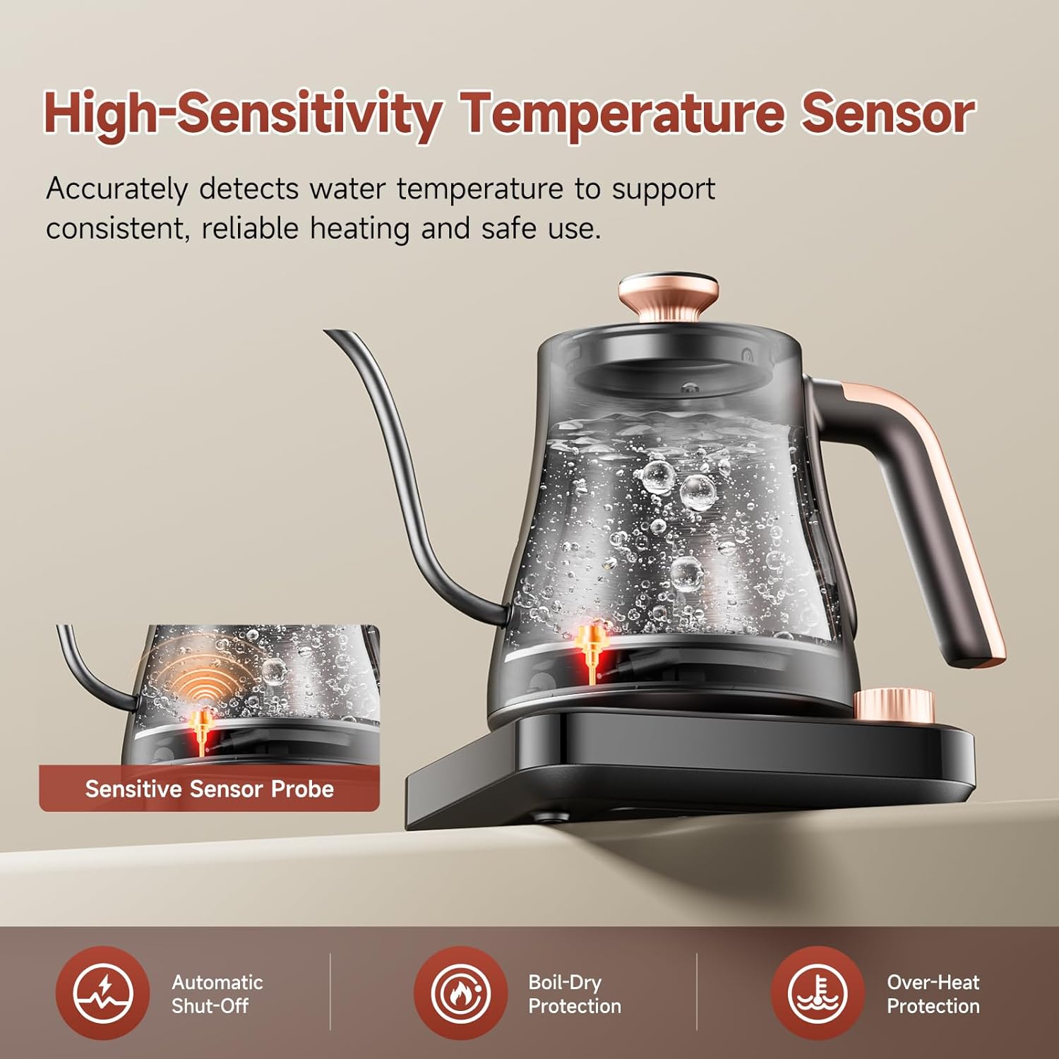 Precision Brewing Made Simple – Enjoy six preset temperatures (130°F, 175°F, 185°F, 195°F, 205°F, 212°F) for the perfect cup every time. Whether it’s baby formula, delicate tea, or pour-over coffee, you get precision at your fingertips