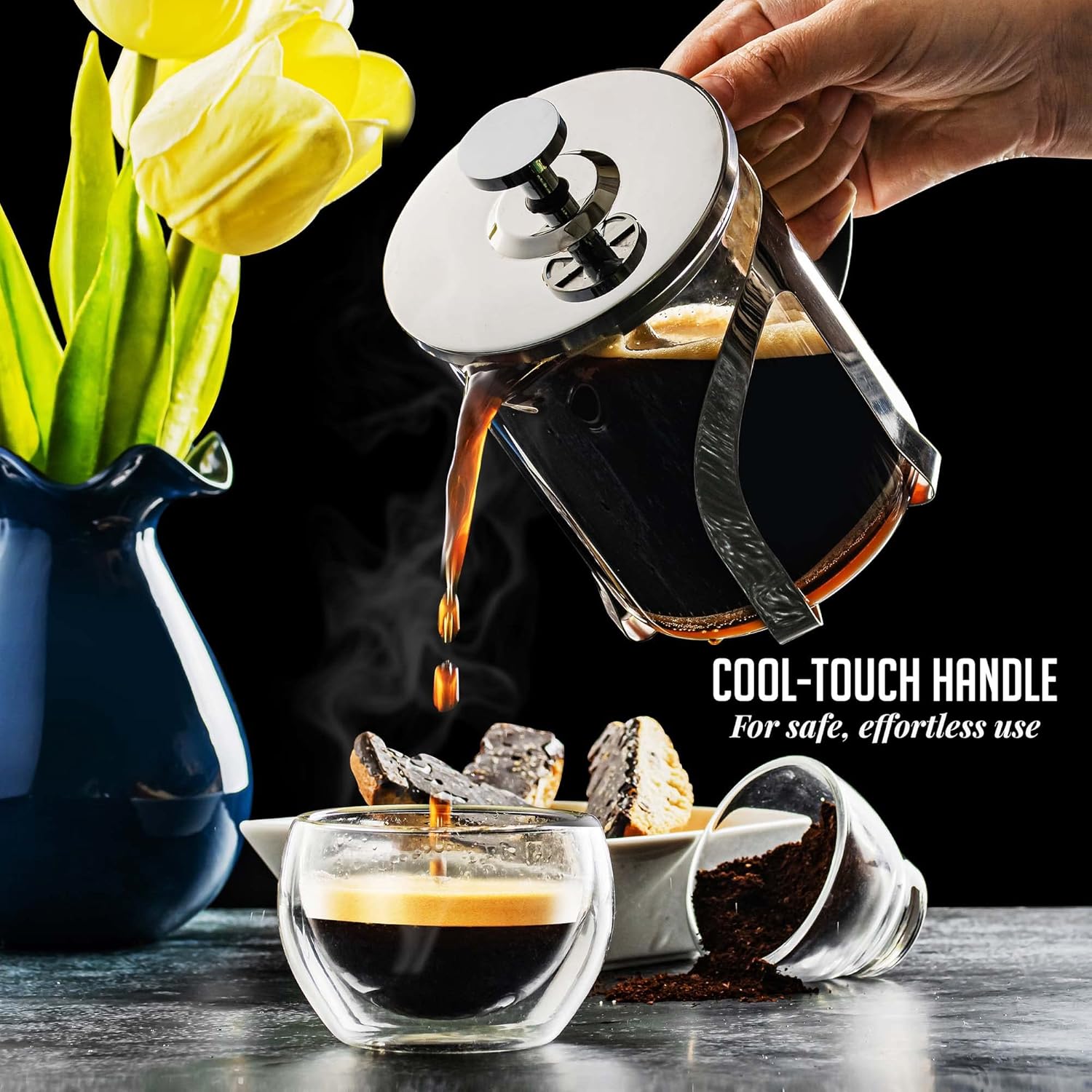 DURABLE & SLEEK DESIGN – Crafted from high-quality borosilicate glass, this French press is resistant to thermal shock and can withstand high temperatures, ensuring long-lasting durability. Its elegant, timeless design, enhanced by stainless steel accents, complements any kitchen decor.