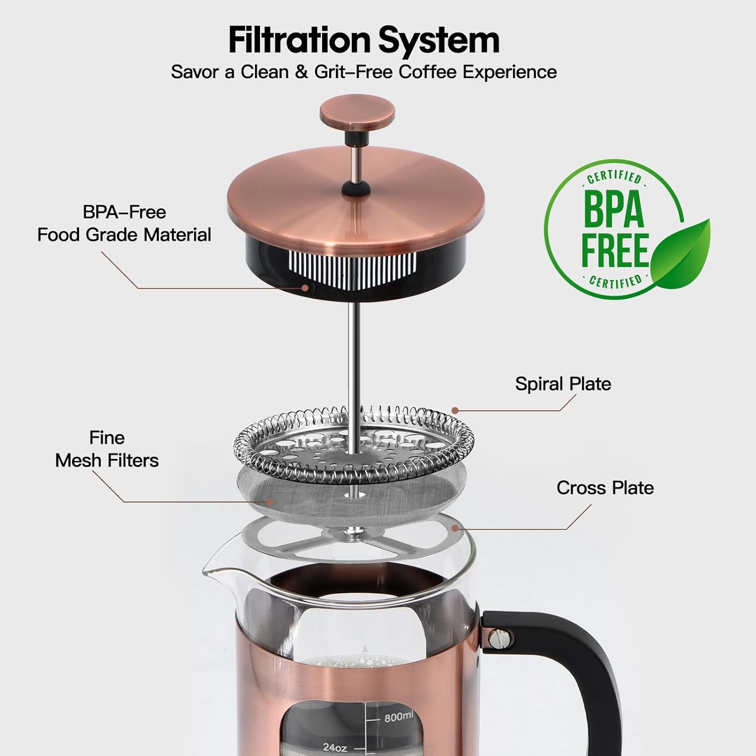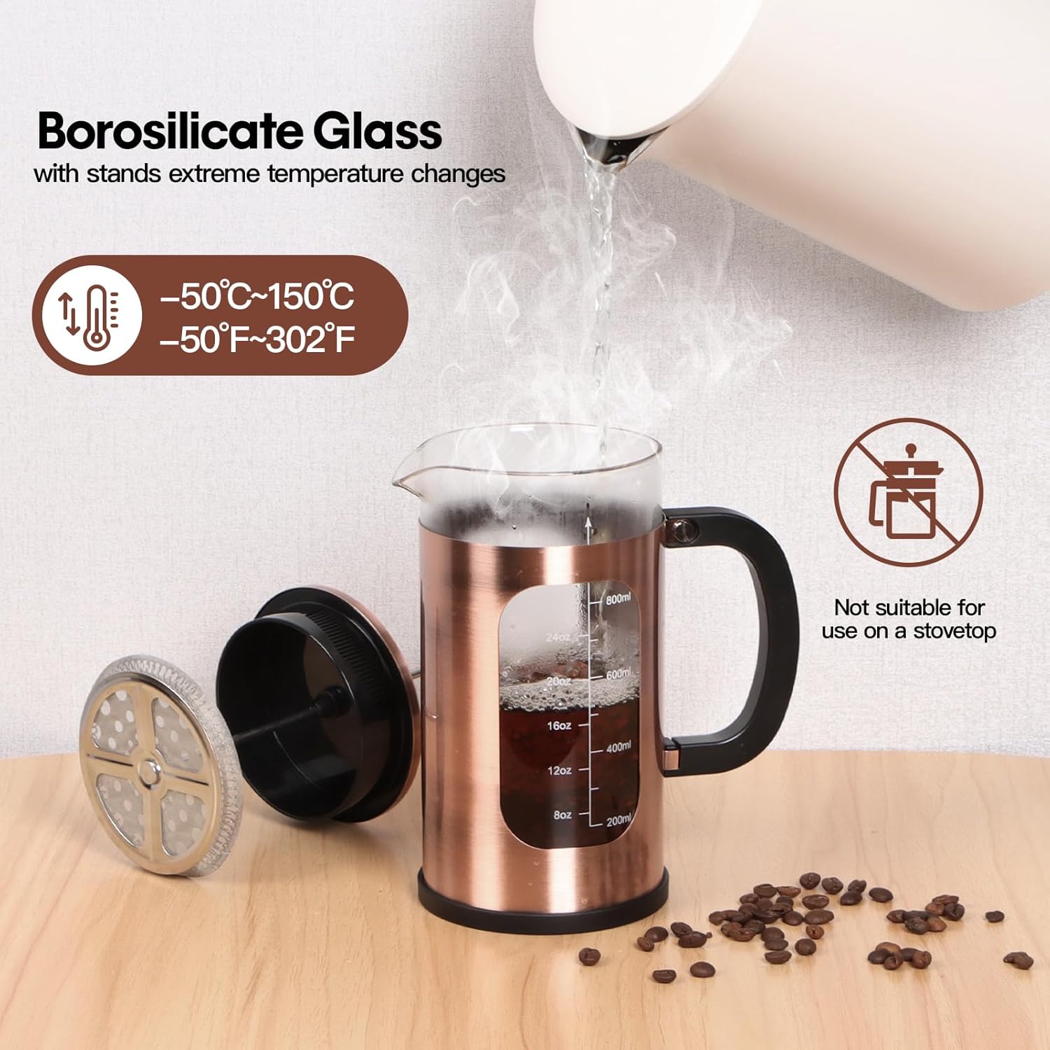 Versatile Brewing: Whether you prefer hot coffee, cold brew, or tea, this French press is perfect for brewing your favorite drinks with ease and precision.