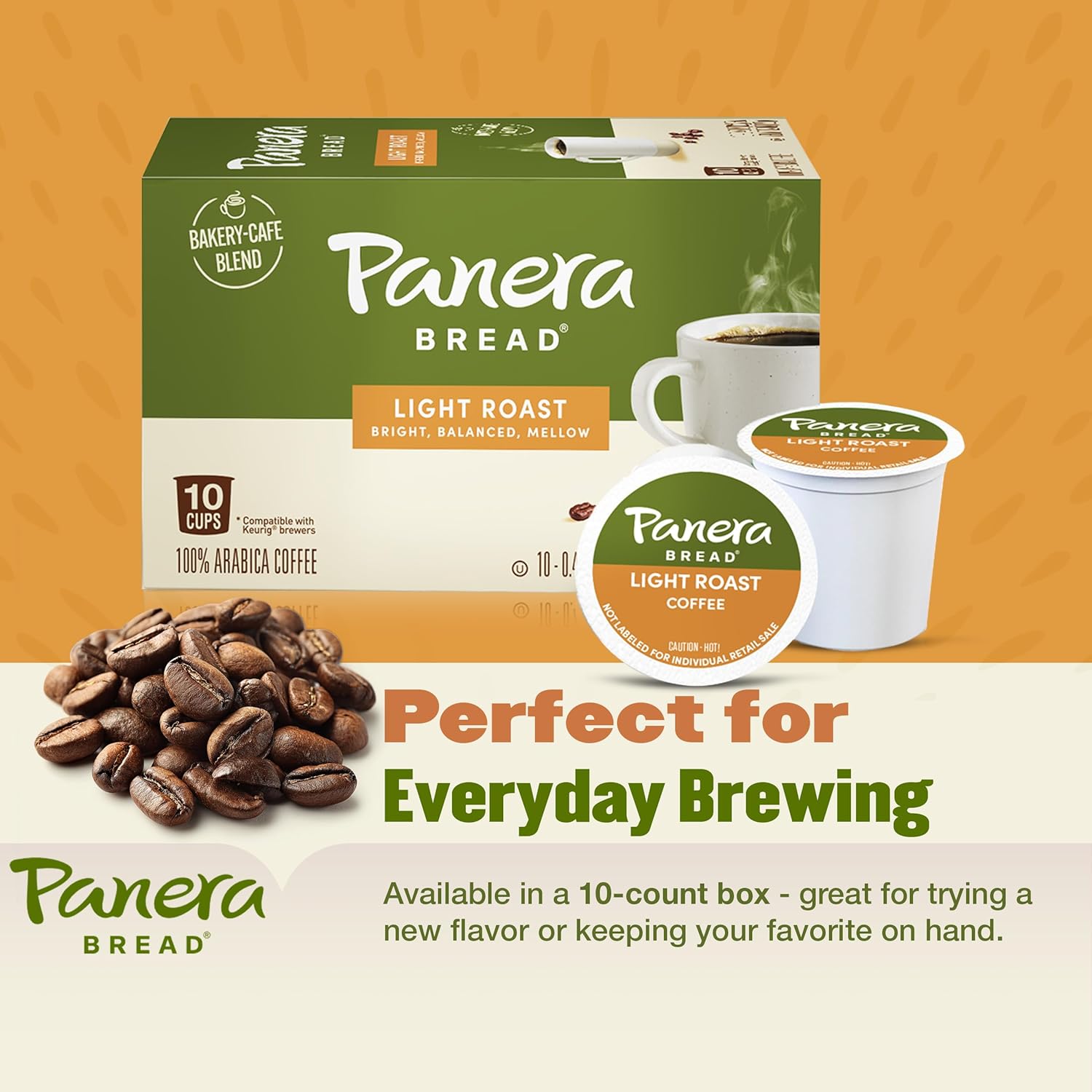 Panera Bread Light Roast Coffee Pods, 100% Arabica Coffee Keurig Compatible Cups,, Breakfast Blend Single Serve Pods, Smooth & Balanced, Kosher Certified, 10 Single Serve Pods (1 Pack of 10)