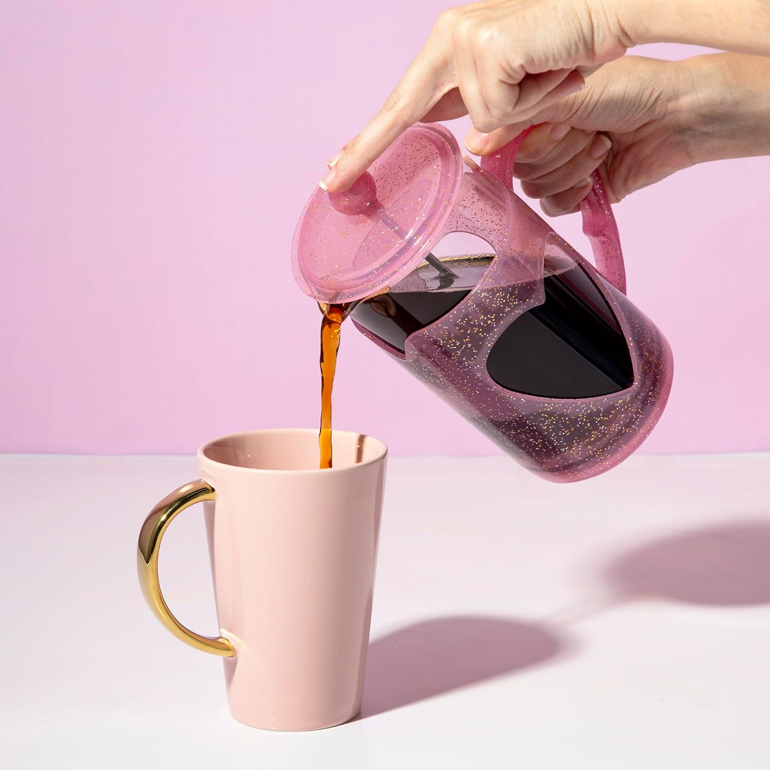 ICONIC STYLE MEETS FUNCTION: Add sparkle to your sips with this glittery 8-cup French press, crafted in the signature Paris Pink.