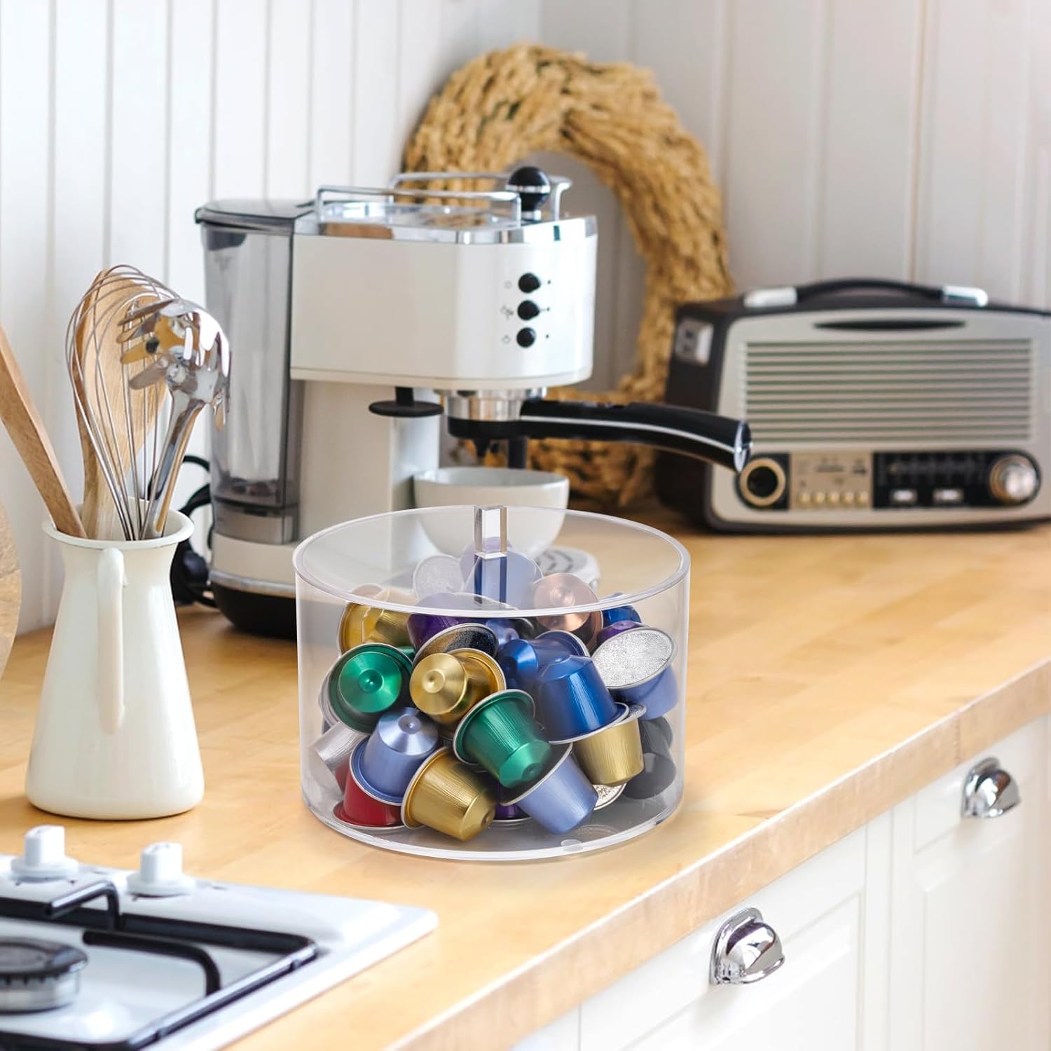 Clean Design: The transparent coffee pod holder allows you to know how many filters are left inside without having to open the lid. Simple appearance complements any countertop decor and matches your coffee bar well