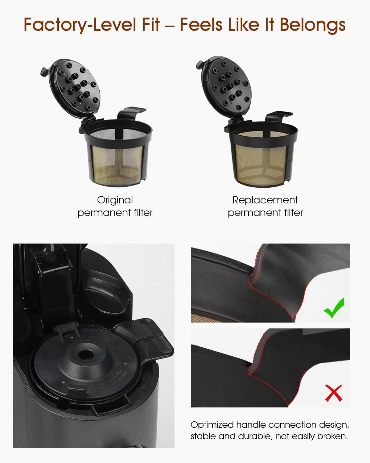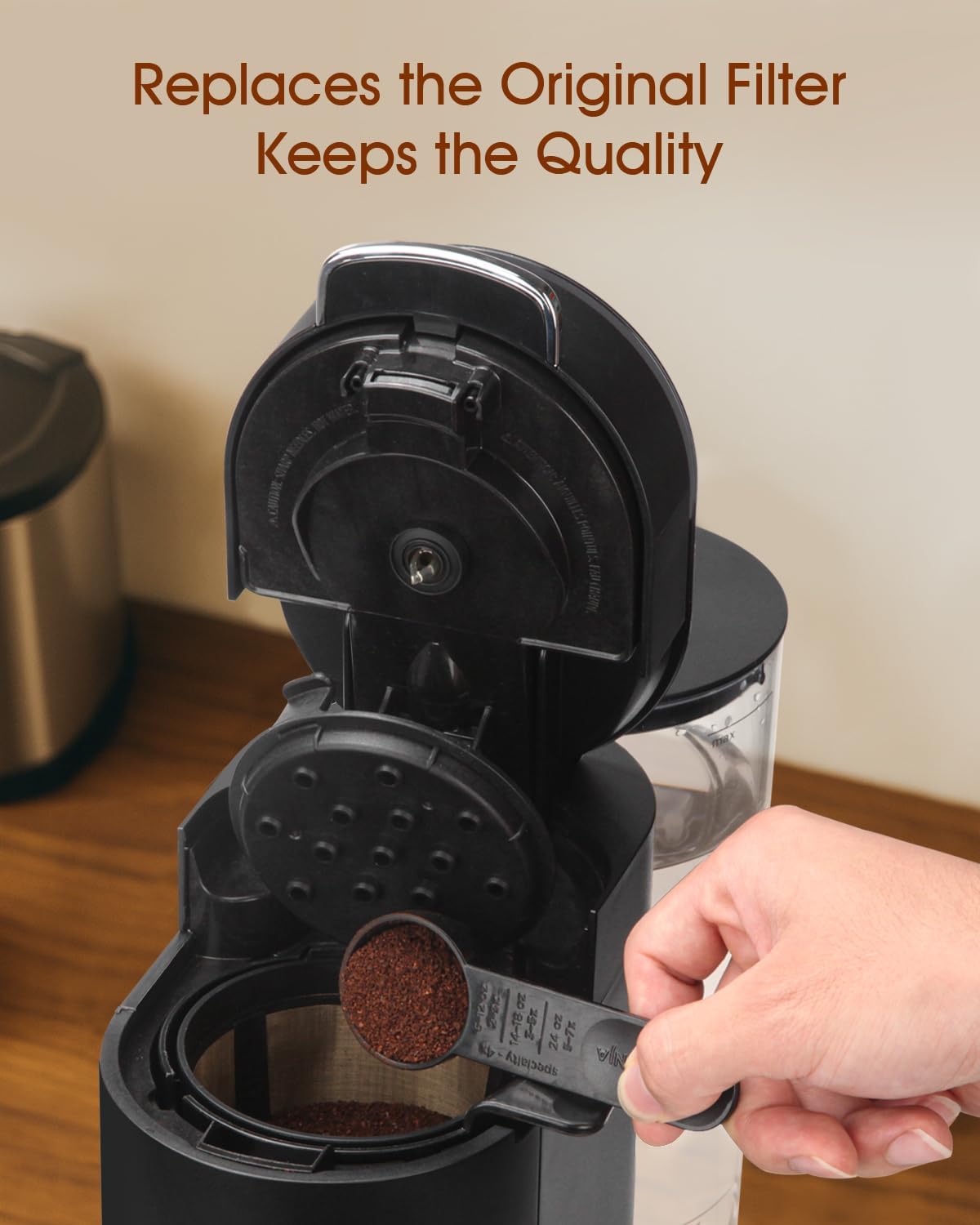 This permanent coffee filter is specifically designed for Ninja Pods & Grounds single serve coffee makers, compatible with PB051, PB040, PB041ST. Crafted from food-safe PP with 20% glass fiber, it features a 120-mesh gold 304 stainless steel mesh bottom to retain flavorful coffee oils. Reusable and dishwasher safe, it offers an eco-friendly and cost-saving alternative to paper filters, while enhancing the richness of every brew.