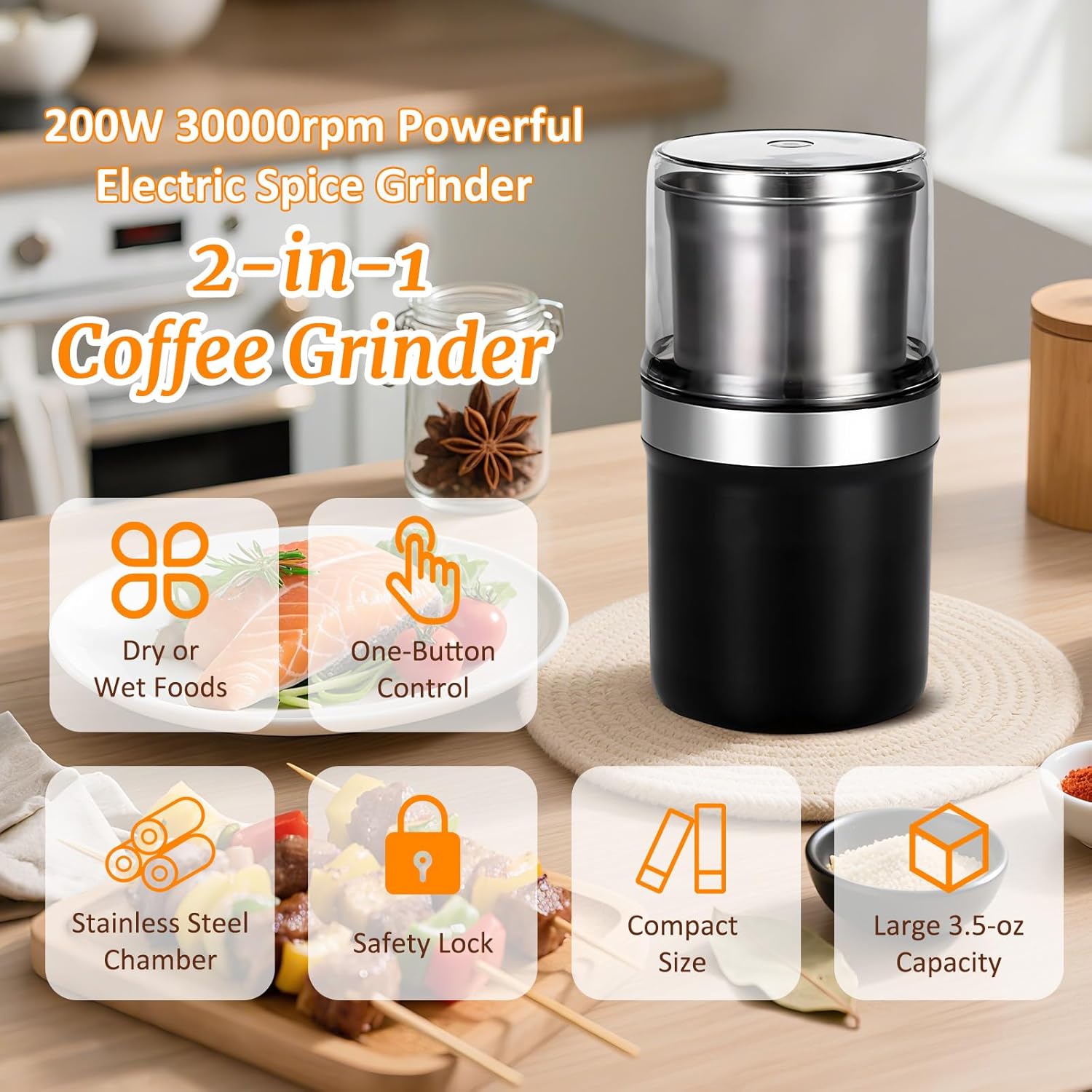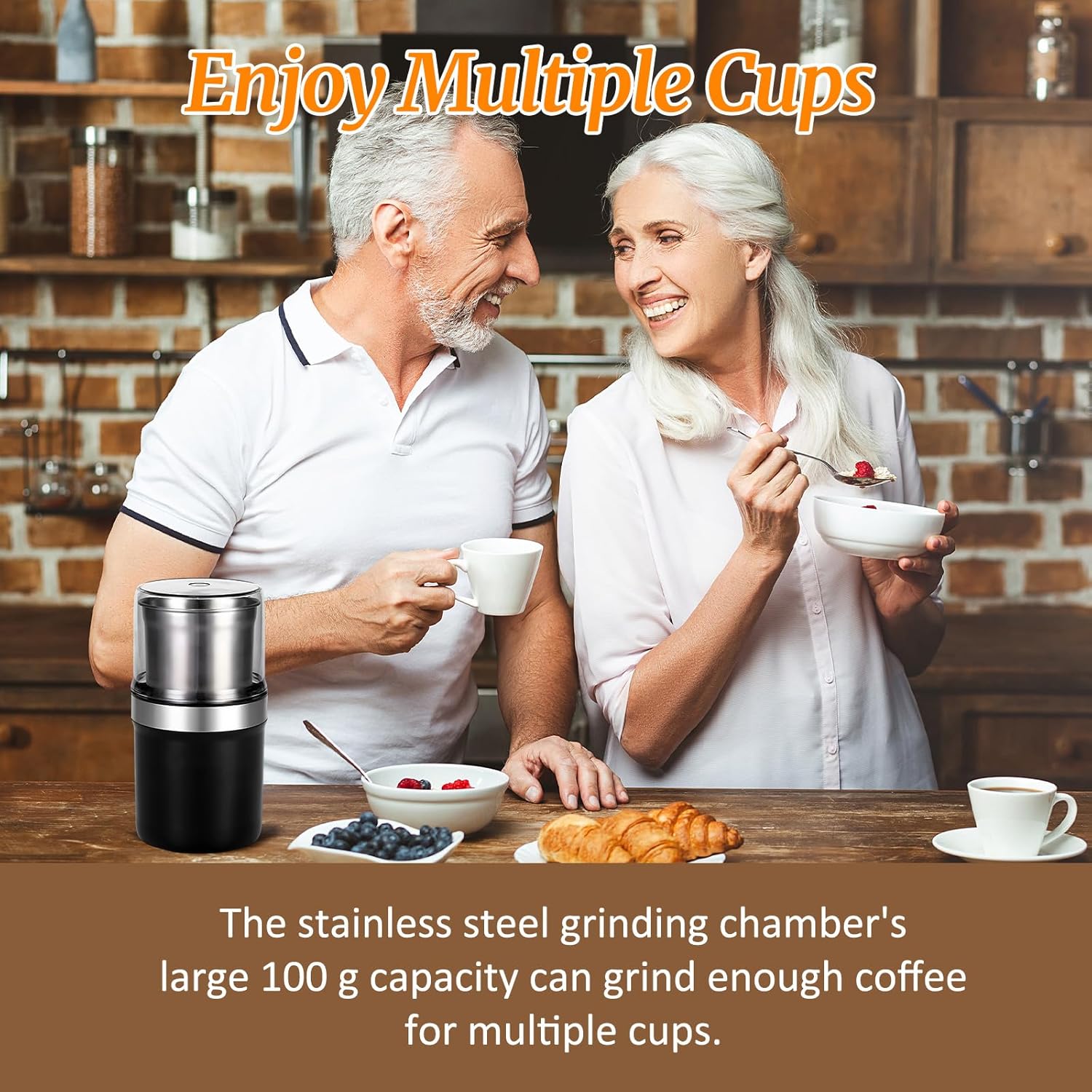 SAFETY PROTECTION: Our electric coffee bean grinder has overheating protection and automatically shuts off after 6 minutes of continuous use. Enjoy peace of mind while using your versatile grinder in the kitchen