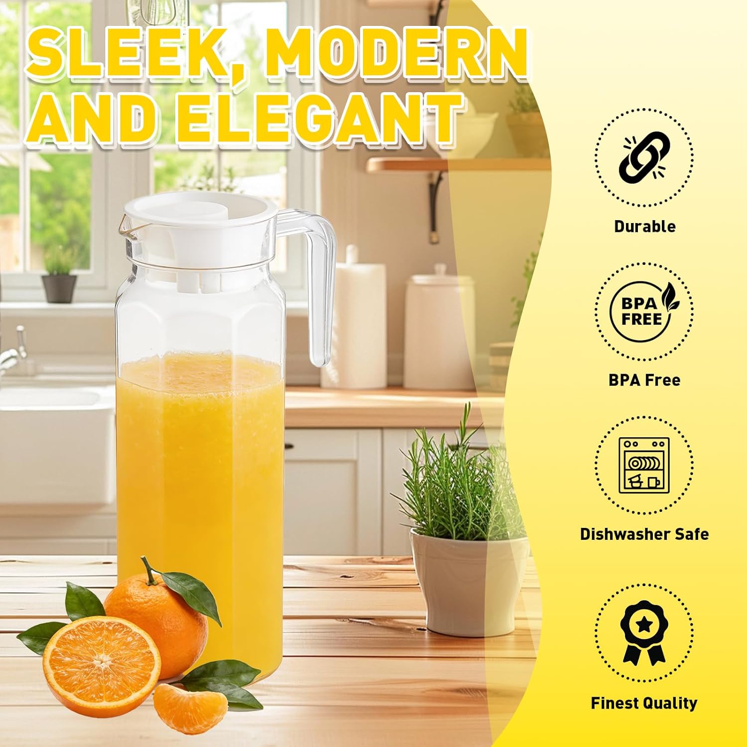 Plastic Juice Pitcher with Lids, 1300ml Large Capacity, Unbreakable & Bpa-Free Water Pitcher for Tea, Lemonade, Sangria, Juice, Beverages (octagonal design)