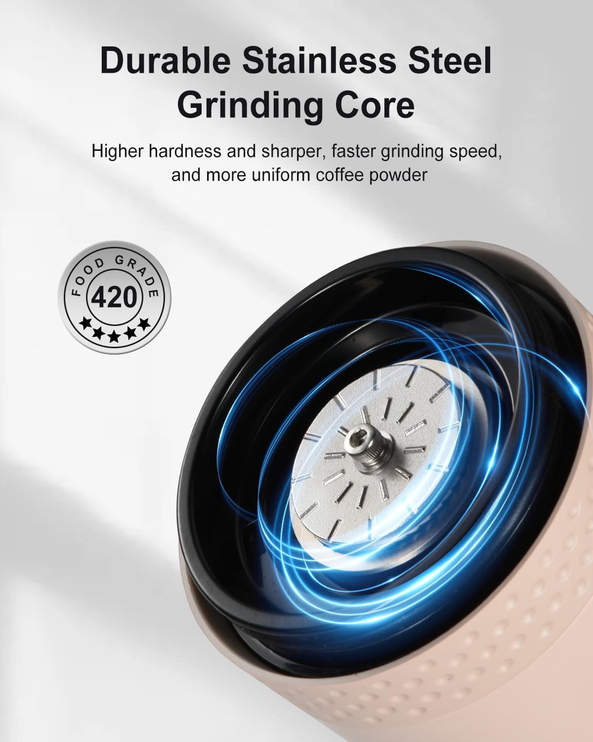 Consistent & Longer Lifespan : Stainless steel burrs stay sharp longer and more durable than ceramic burrs, preventing uneven grinding and ensuring consistently high-quality coffee. Enjoy hassle-free use with fewer replacements and more consistent performance.