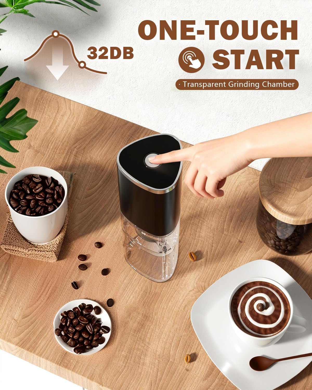 5. Auto-Stop Design: Press the button to start grinding; release to stop. Longer grinding yields finer results