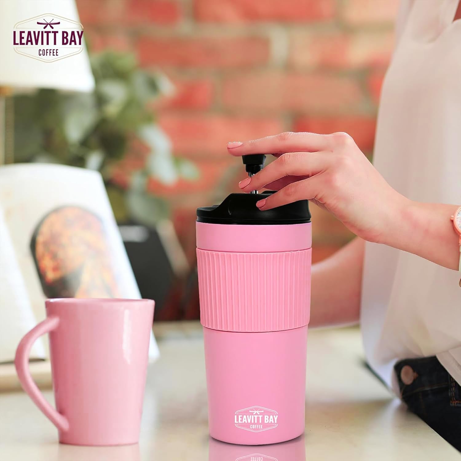 Portable French Press Travel Mug – Insulated Stainless Steel French Press Mug for Hot or Cold Brew – Durable Travel Coffee Maker – On-the-Go Tea & Coffee Maker (Pink)