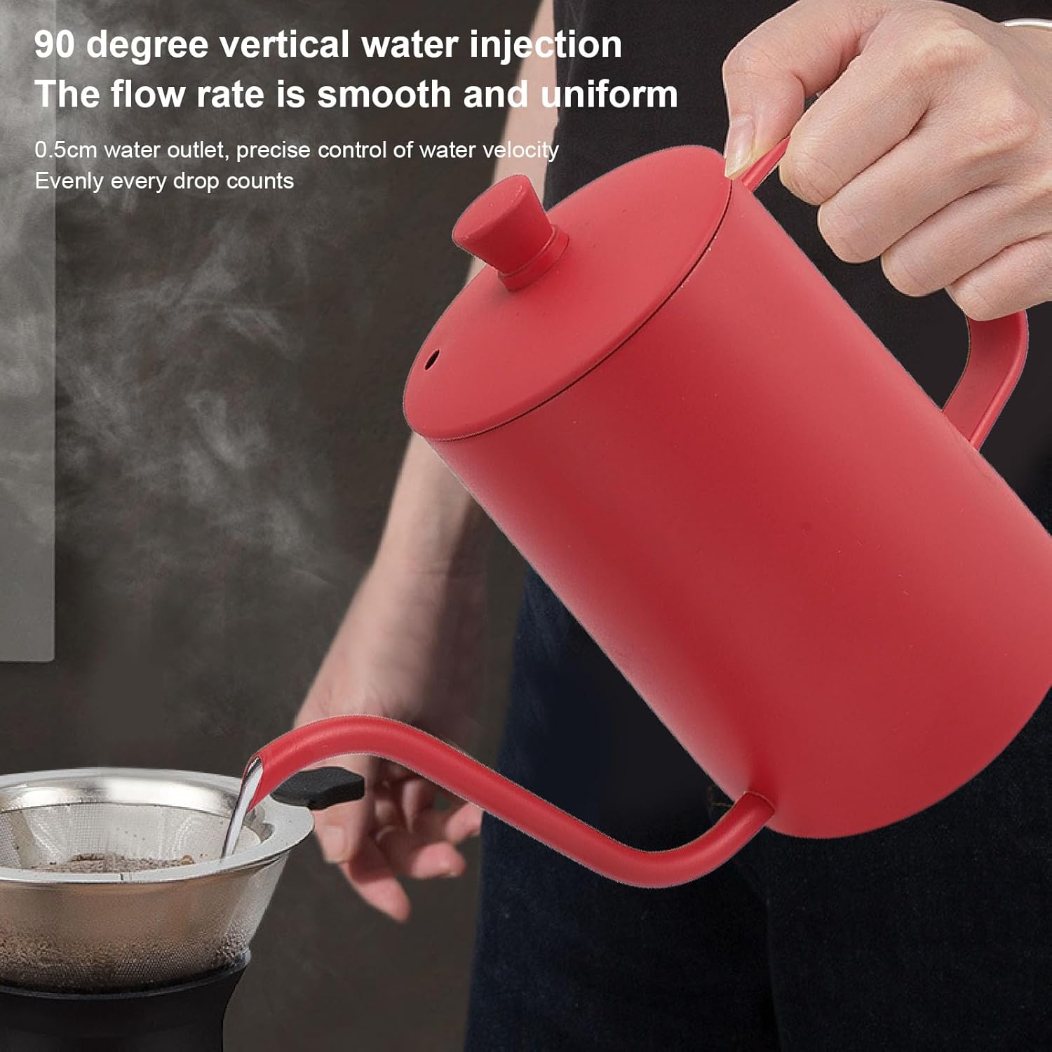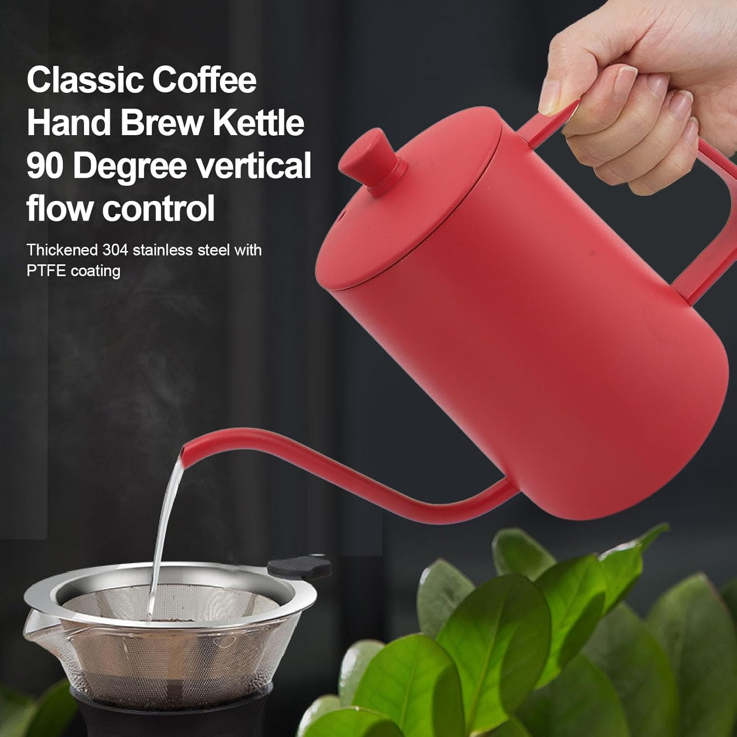 STEEL HANDLE DESIGN: The steel handle design of the pour over coffee kettle is not only beautiful, but also sturdy and prevents burns, making it safer and more convenient to use.