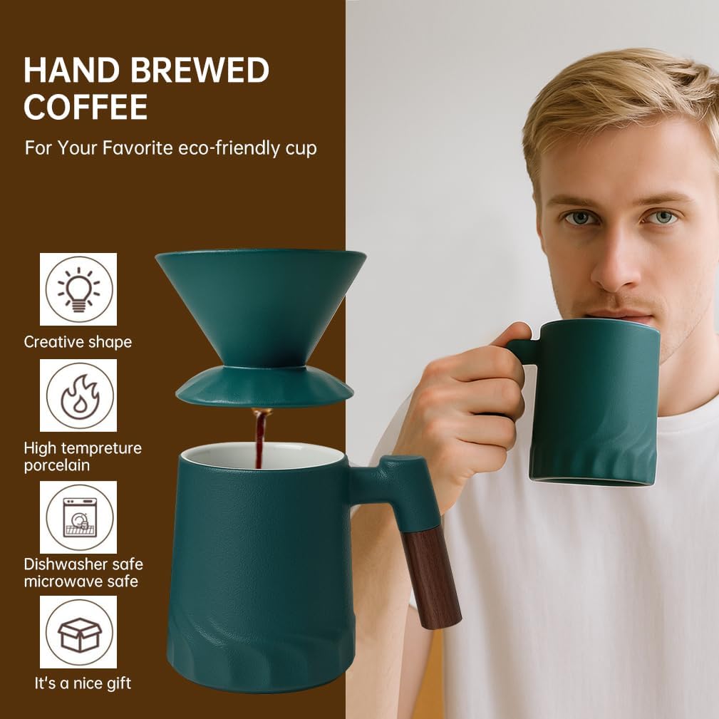 15.5oz Coffee Pour Over Set: 450ml ceramic mug + coffee dripper combo brews 1-2 cups in minutes. Compact size saves counter space while delivering café-quality coffee