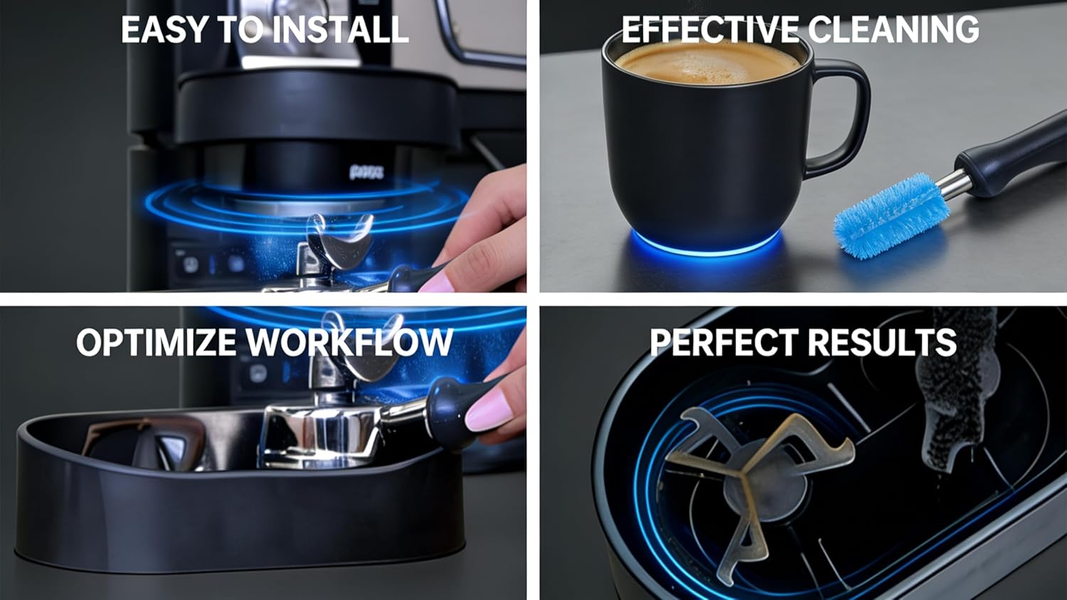 Upgrade Your Routine: From Manual Tool to Near-Automatic Efficiency While not an automatic portafilter cleaner, this intelligent quin spin espresso cleaner-style design significantly speeds up the process. It’s the essential espresso cleaner toolkit that brings professional organization and efficiency to home and commercial settings alike.