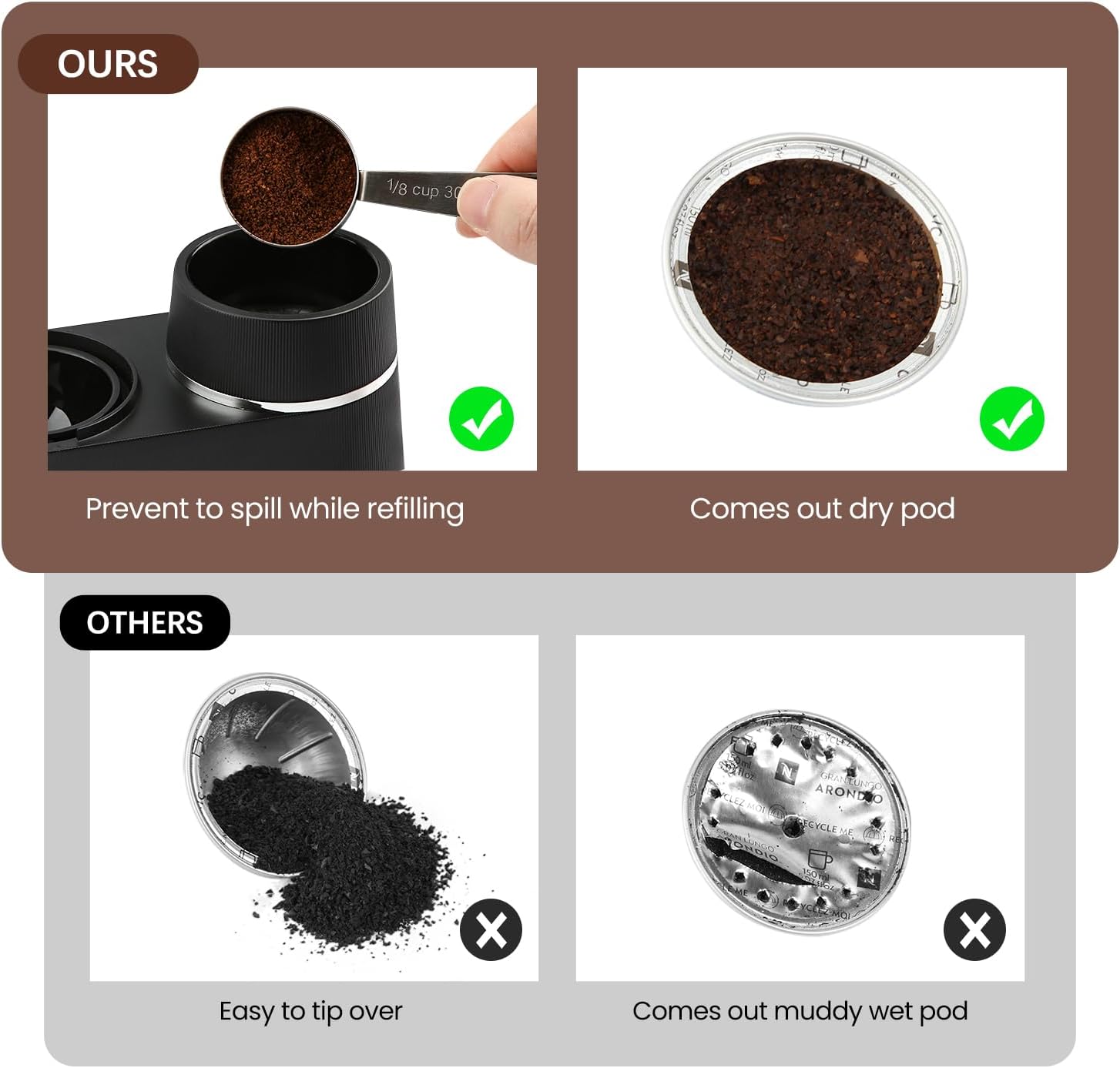 EFFICIENT FILLING FUNNEL: Are you still worried about coffee powder splashing around when filling the capsule? Our Vertuo capsule refilling kit is designed with a powder filling funnel, which is designed to guide every gram of coffee powder directly into the Vertuo capsule – no spillage, no waste, no worry and no effort.