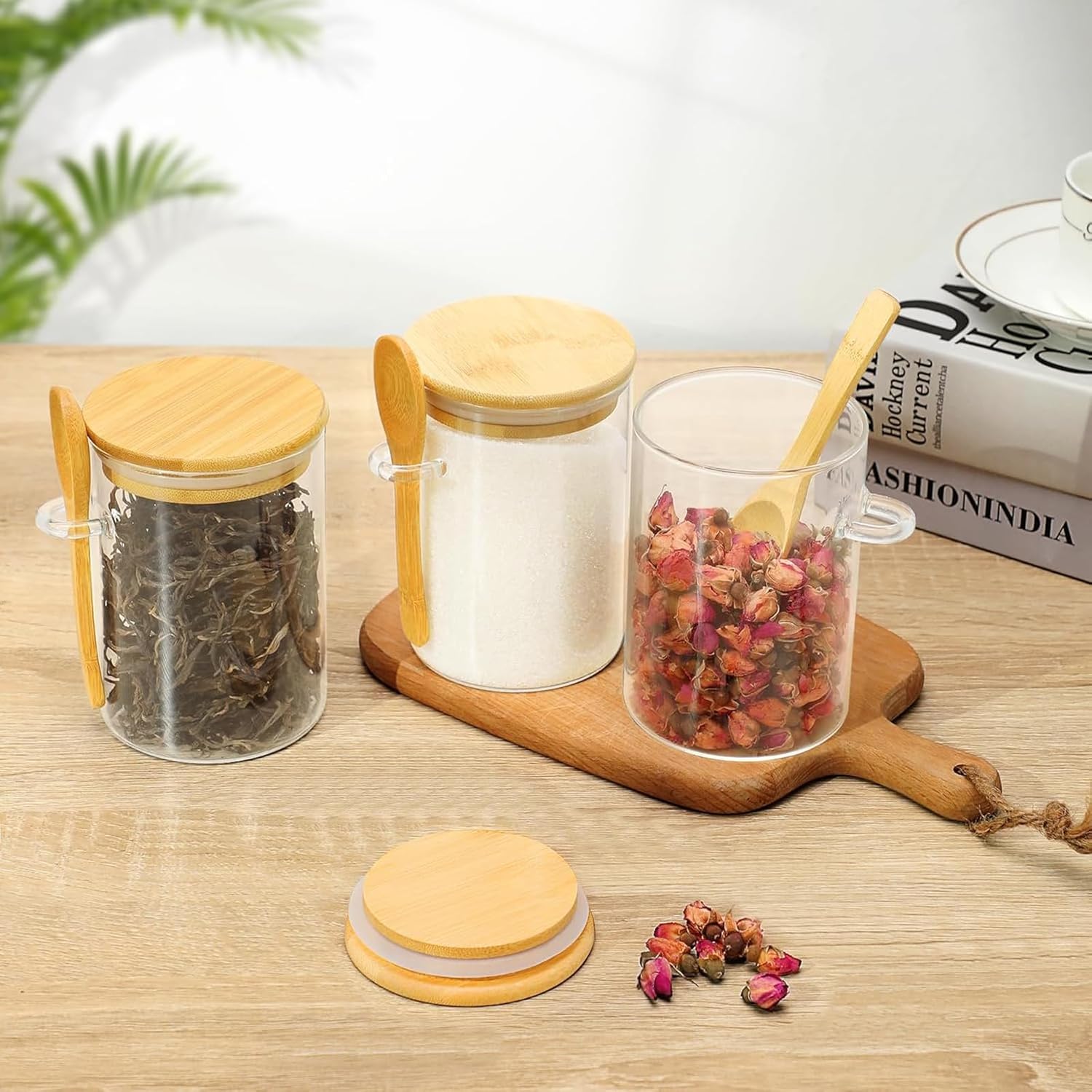 Glass Containers Jars with BambooGlass Containers Jars with Bamboo Secure Airtight Sealing