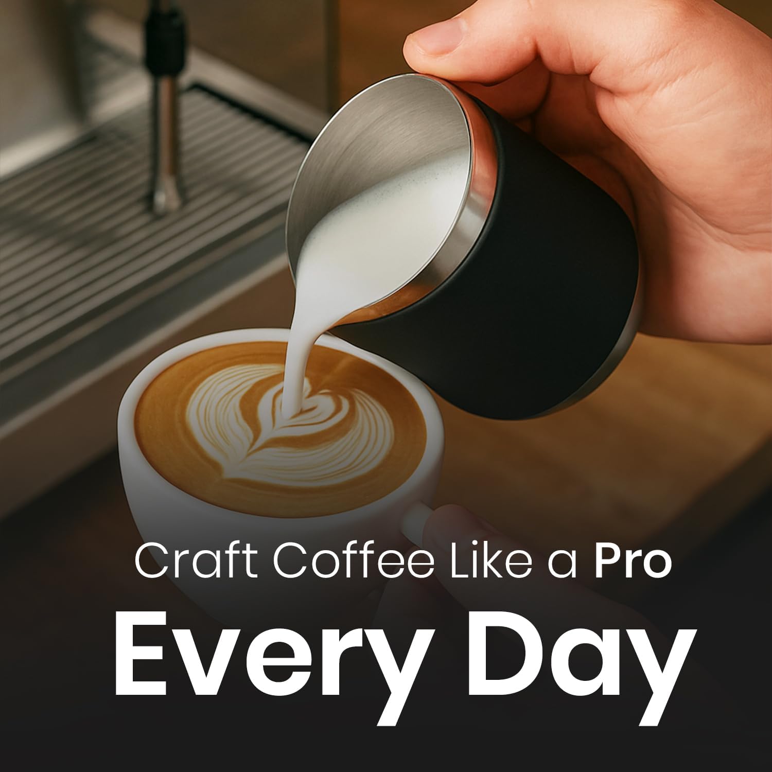 𝐏𝐄𝐑𝐅𝐄𝐂𝐓 𝐅𝐎𝐑 𝐋𝐀𝐓𝐓𝐄 𝐀𝐑𝐓 𝐀𝐍𝐃 𝐏𝐎𝐔𝐑𝐈𝐍𝐆: The tapered spout is engineered for accuracy, allowing baristas to pour microfoam with clean edges and fine details. From hearts to rosettas and tulips, this pitcher helps you create consistent and professional-quality latte art every time.