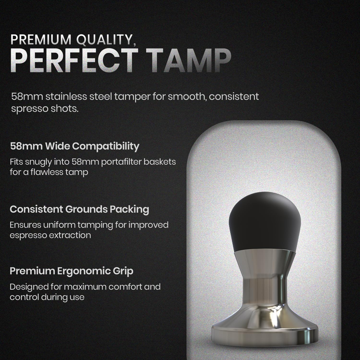 𝐏𝐄𝐑𝐅𝐄𝐂𝐓 𝟓𝟖𝐌𝐌 𝐂𝐎𝐌𝐏𝐀𝐓𝐈𝐁𝐈𝐋𝐈𝐓𝐘: This espresso tamper tool features a precise 58mm diameter, compatible with most espresso machines and portafilter baskets. Ensure proper fit for uniform grounds packing, delivering café-quality results with your coffee machine, espresso maker, or accessories.