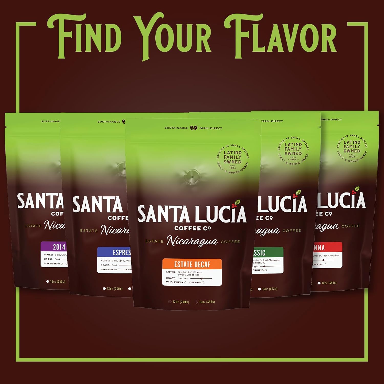Santa Lucia Coffee – Nicaraguan Estate Decaf Roast – Low Acid, 91 Point, SHG, Small Batch Roasted, Farm Direct, 100% Single-Origin Ground Coffee, 1 Bag (16oz Each)