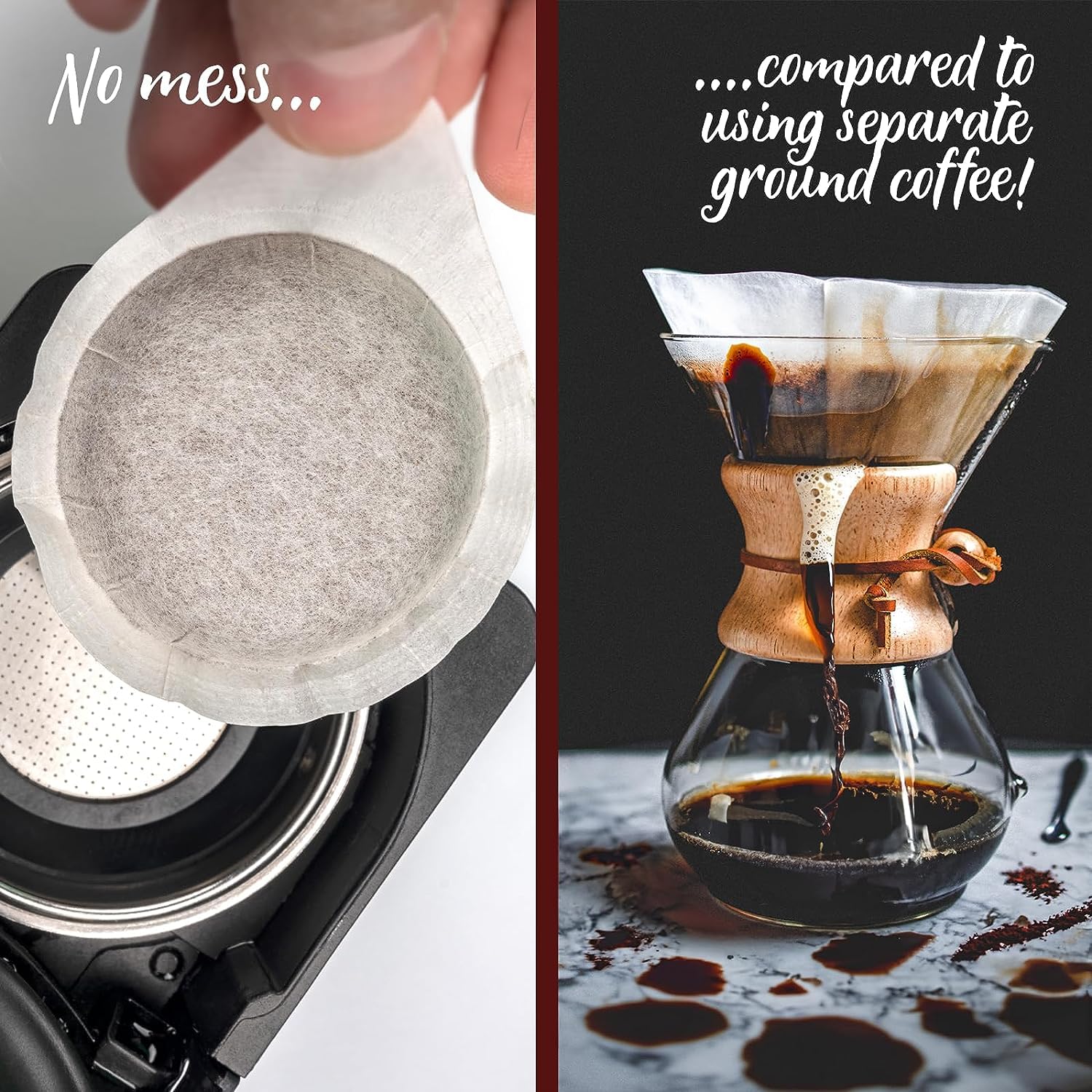 SINGLE SERVE COFFEE PODS: Made from the finest ground coffee beans, pre-measured and sealed inside their own coffee filter for maximum freshness in each coffee cup!