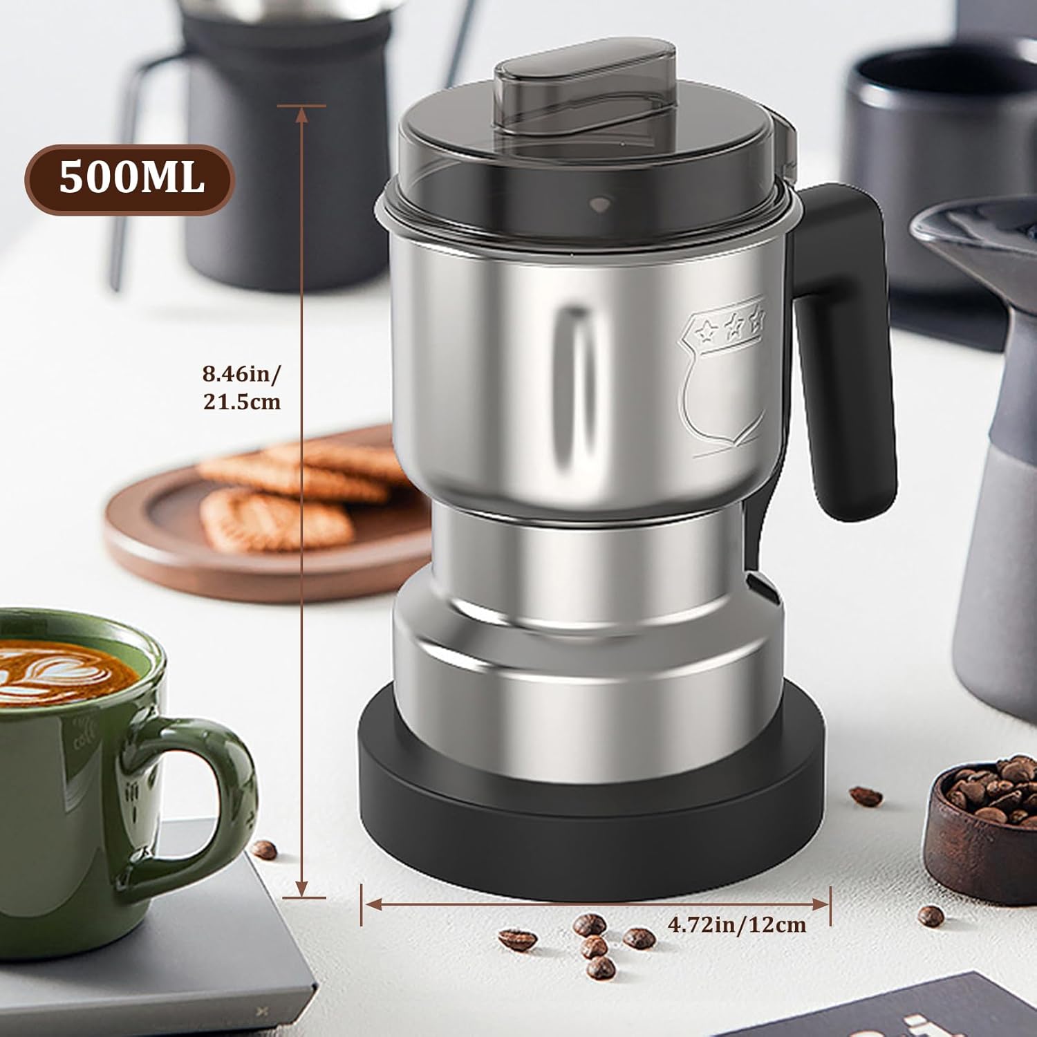 One-Button Click Operation: This electric coffee grinder adopts one-button press design, which can only start grinding when the lid and the cup are completely locked at the handle, and stop immediately when it is released, which greatly improves the safety of use. Translucent lid design made of high-quality materials, the whole grinding process is clearly visible