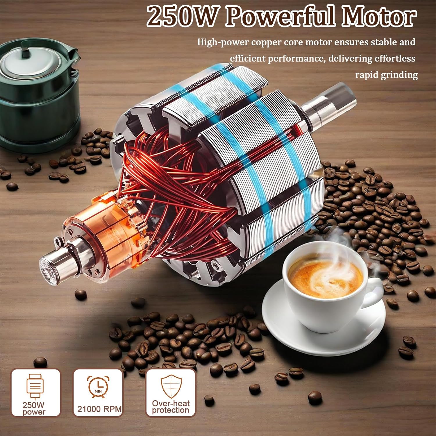 Powerful Spice Grinder: Featuring a upgraded powerful 250w motor, our electric coffee bean grinder delivers precise and uniform grinding performance. With its steel 6-blade design, you can achieve your desired coarseness or fineness in just 6 seconds. Customize your grind from coarse to fine by simply adjusting the pressing duration of the one-button operation