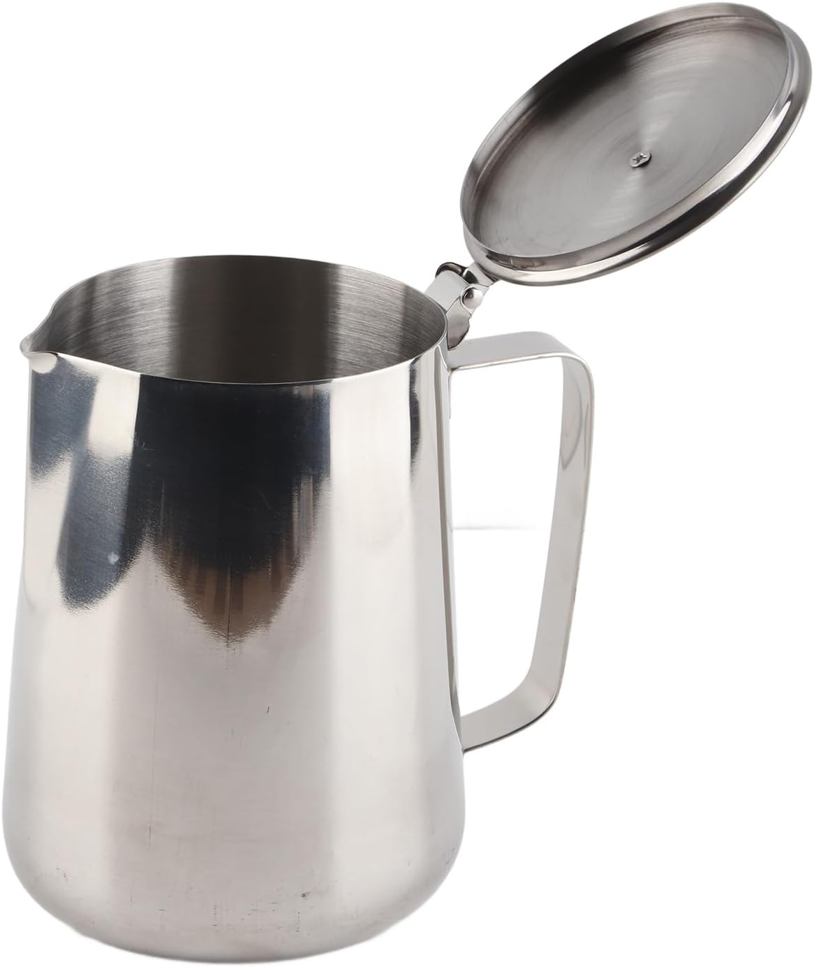 [No Spills] Our stainless steel latte milk jug comes with a lid, designed specifically to keep any milk from spilling out. This added measure is ideal for ensuring a clean and efficient milk frothing experience, leaving your kitchen tidiness after crafting your favorite caffeinated beverage.