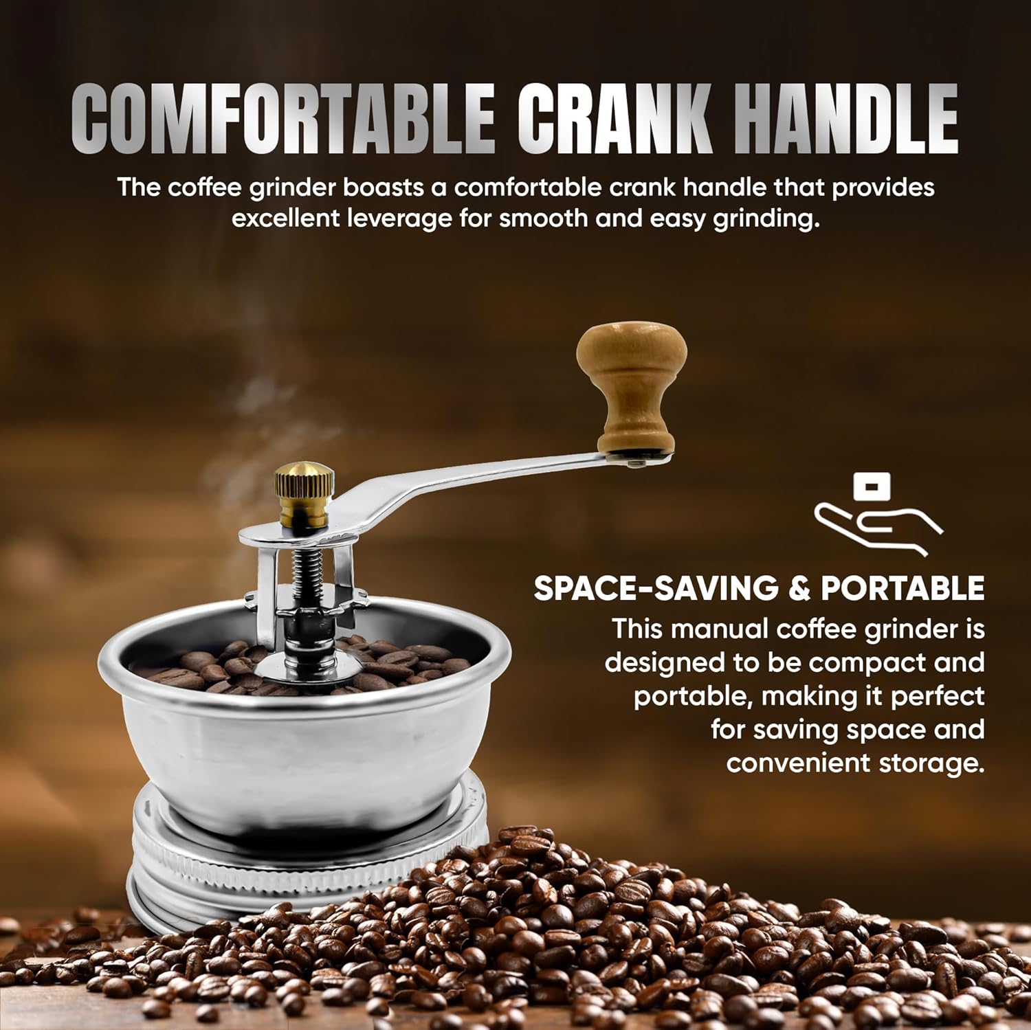 Premium Manual Crank Grinder: Enjoy the full control and fun of grinding your coffee beans manually while preserving the aroma and flavor of your beans with our efficient ceramic burr grinder.