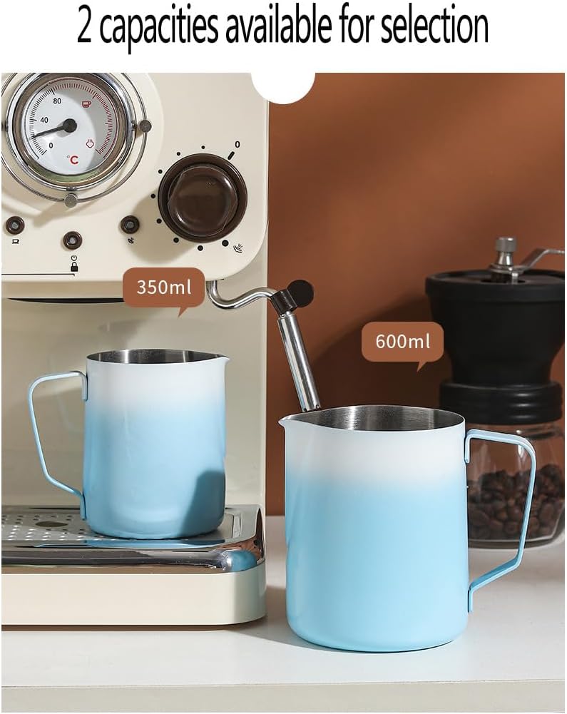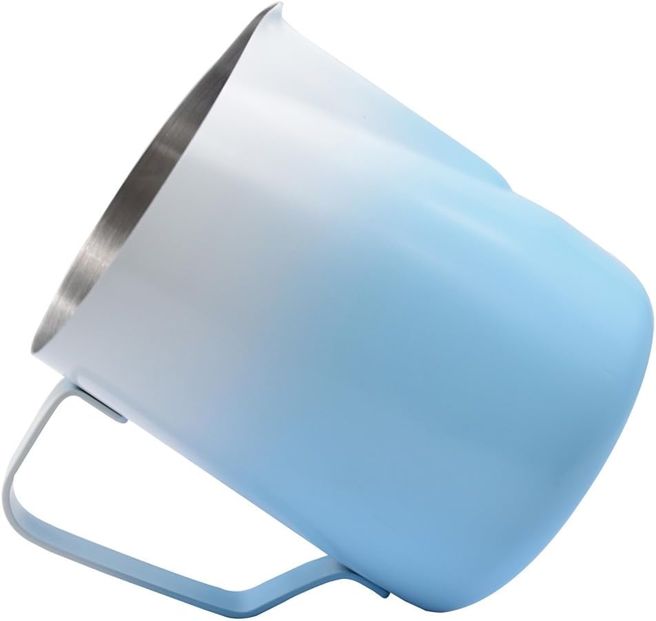 Stainless Steel Espresso Steaming Pitchers Frothing Pitcher Jug Coffee Milk Frothing Cup, Coffee Steaming Pitcher – Blue, 12 oz(350 ml)