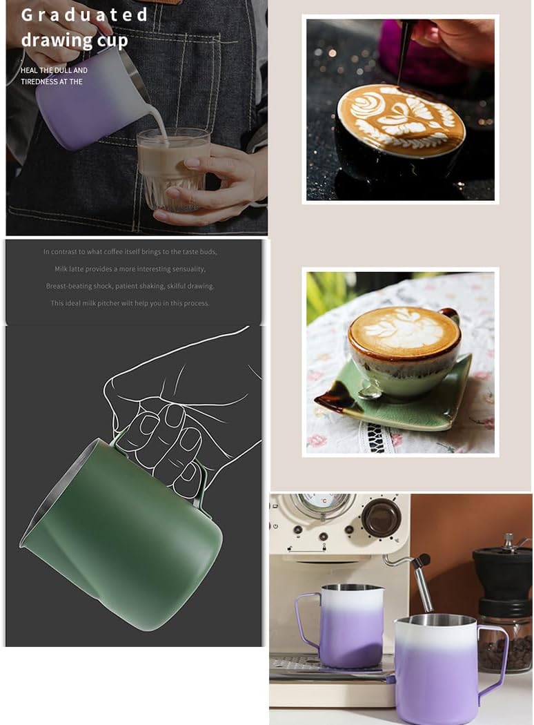 ? With the latte art pen to make a beautiful cup of coffee, and with the help of the easy-to-read measurement etching inside, you can get the right amount of milk to get the perfect foam. Also make a milk jug with a measuring cup for cooking, with ounce and milliliter marks.