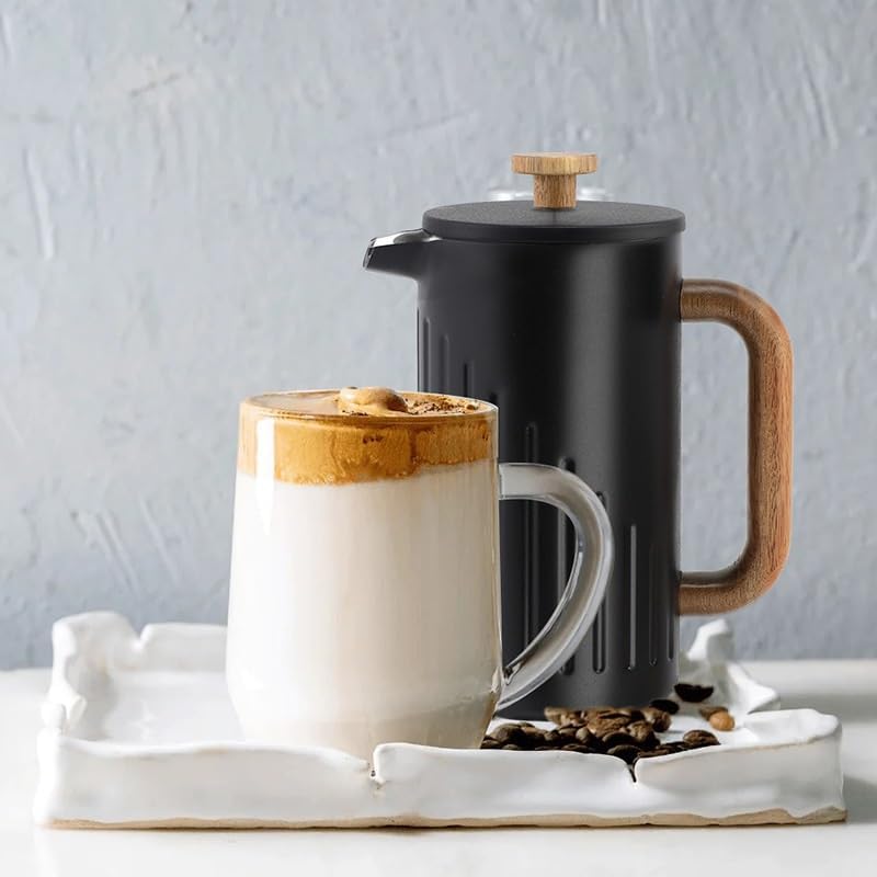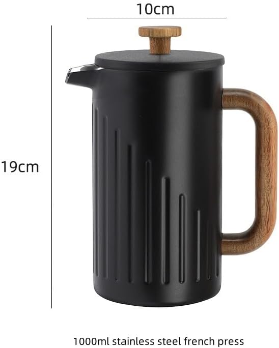 Stainless Steel French Press With Wooden Handle Filter Coffee Pot Double Layer Tea Brewing With